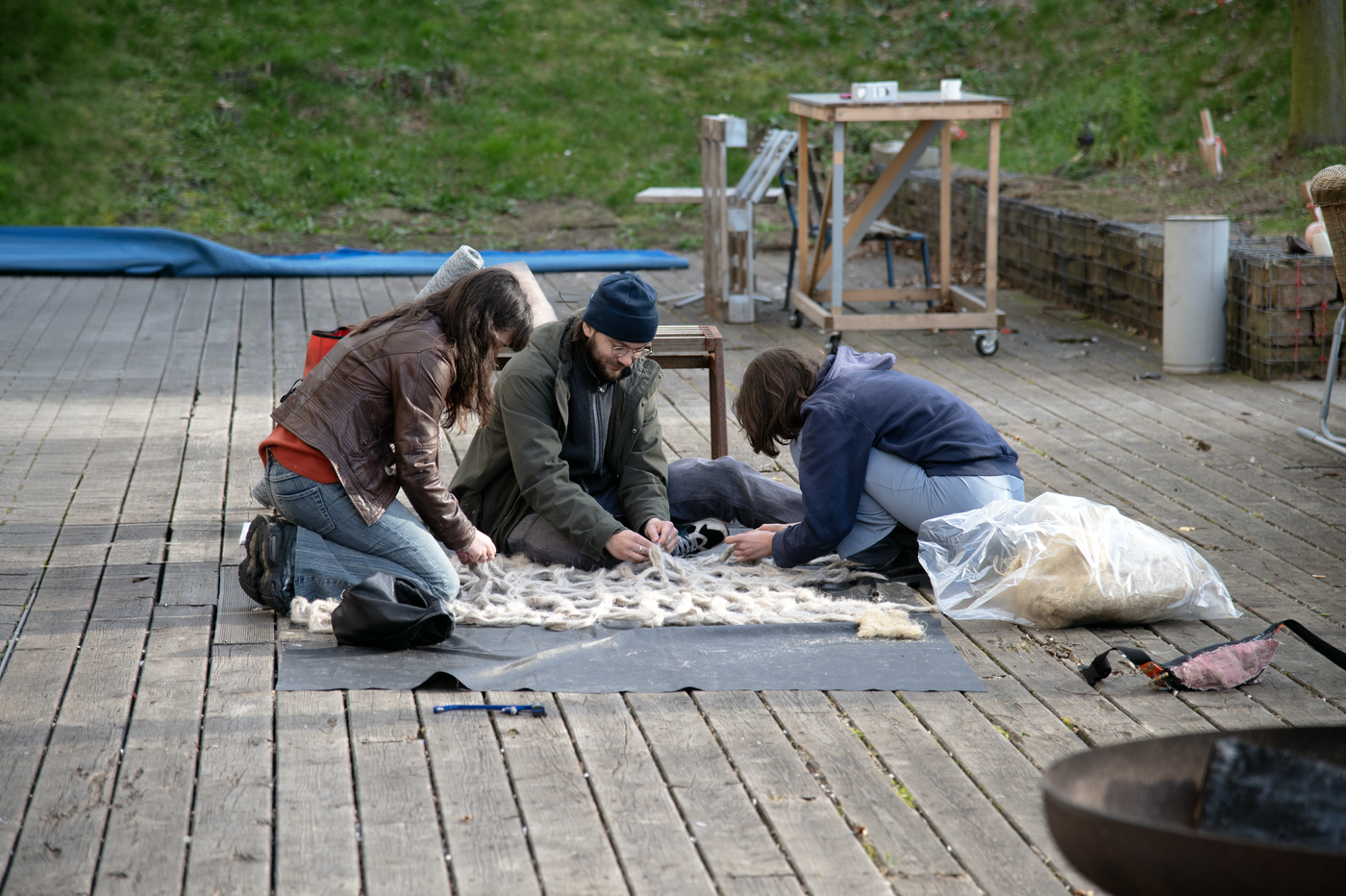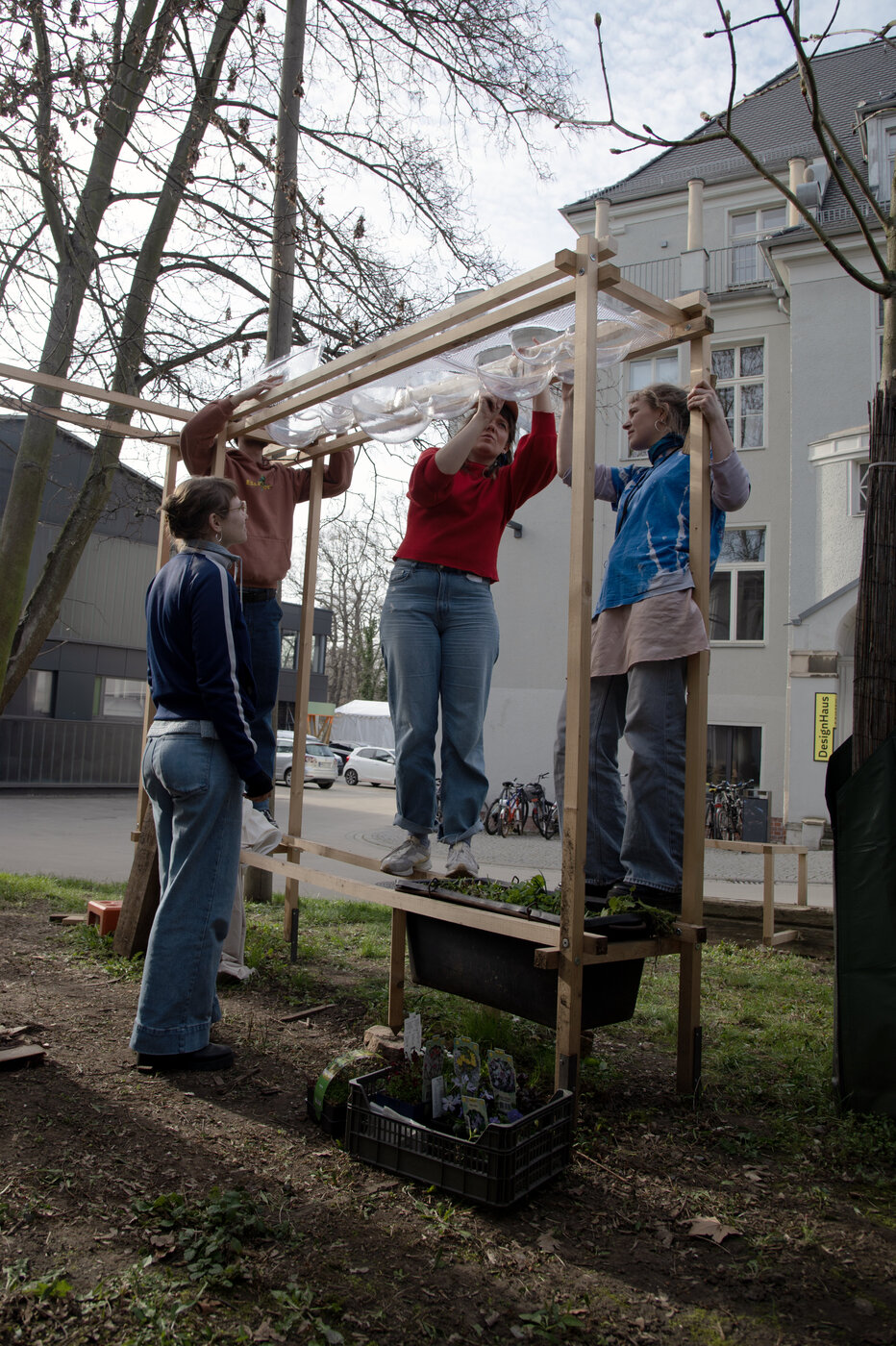 Die Veranstaltung fand in Kooperation zwischen der BURG und der UDK Berlin statt. Valerian Blos, künstlerischer Mitarbeiter an der UDK im Fachbereich Design und Neue Medien und Initiator des Lab for new Intermateriality, führte im Vorfeld in das Thema der Session ein. Auch Student*innen der UDK nahmen an dem Workshop teil, entwarfen und bauten die Konstruktion gemeinsam mit den Burg-Student*innen auf. Zusätzlich stand Felix Schimmeyer, ein Experte für Pilzzucht, den Teilnehmer*innen bei der Umsetzung ihrer Konzepte mit seinem Fachwissen beratend zur Seite.