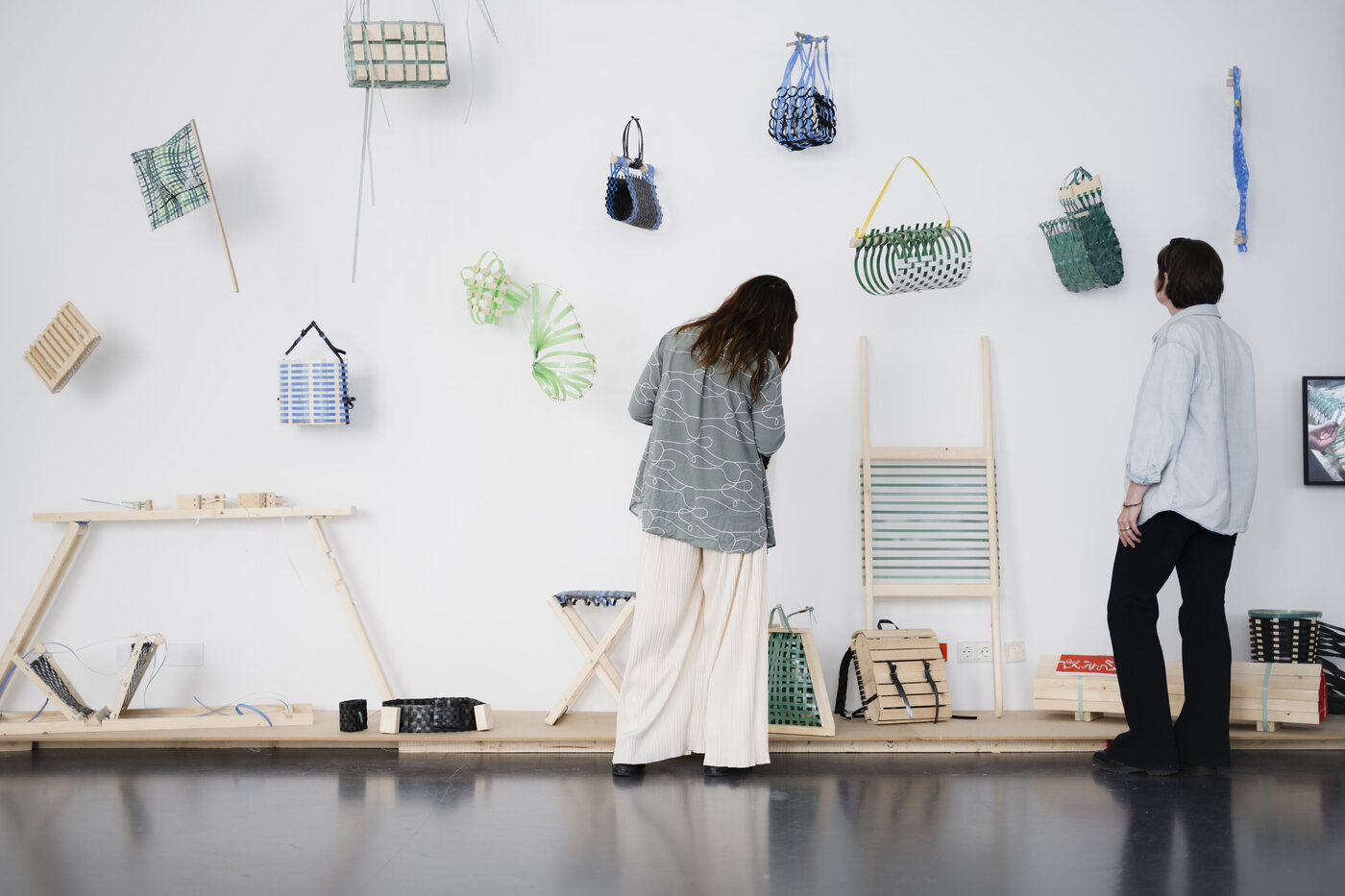 Wie können die beiden Materialien neu in Verbindung gebracht werden? Wo liegen die Potenziale, sie zu etwas zu überführen, mit dem wir etwas tragen, schultern, fassen, bündeln, mit uns nehmen können - fernab von klobigen, rauen, umreiften Paletten?