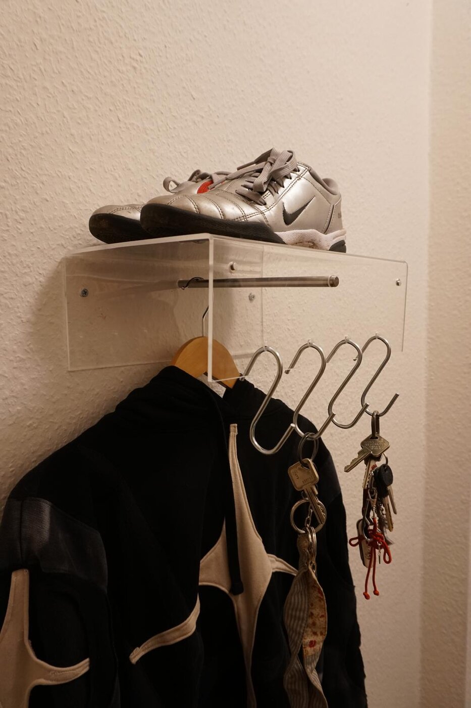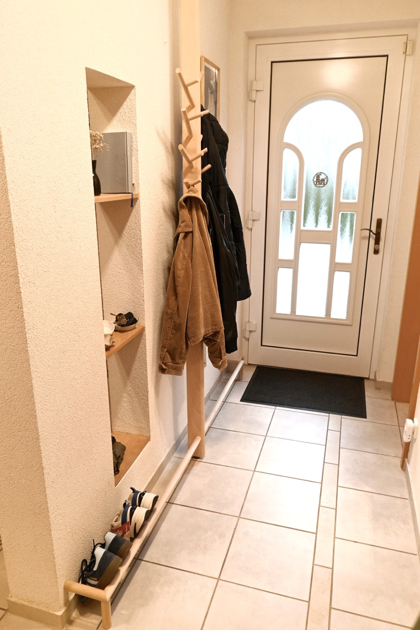 Welches Material Sie verwenden (z. B. Kunststoff, Holz, Metall) und welche Herstellungstechnik Sie einsetzen, bleibt Ihnen überlassen. Entscheidend ist jedoch, dass Sie sich zu Beginn intensiv mit der bestehenden Garderobensituation, den Bedürfnissen und den räumlichen Bedingungen vor Ort auseinandersetzen. Führen Sie dazu ein Interview mit Ihrem „Kunden“ bzw. Ihrer „Kundin“, um herauszufinden, was bisher nicht optimal funktioniert und wo Verbesserungsbedarf besteht. Dokumentieren Sie den Istzustand sorgfältig mit aussagekräftigen Fotos, die auch die Unzulänglichkeiten sichtbar machen, auf die Sie dann in Ihrem Entwurf eingehen.