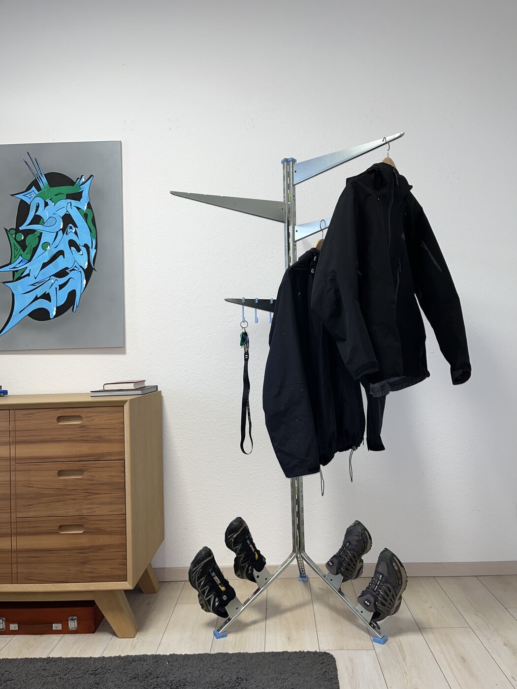 In der zweiten Woche wird Ihre personalisierte Garderobe umgesetzt, vor Ort montiert und auf ihre Tauglichkeit hin überprüft. Durch diese praxisnahe Umsetzung erhalten Sie die Möglichkeit, Material- und Fertigungsentscheidungen direkt zu erproben und im realen Kontext zu bewerten.