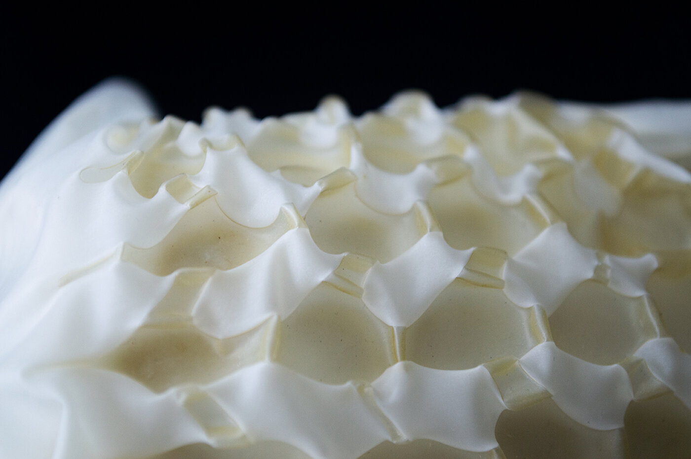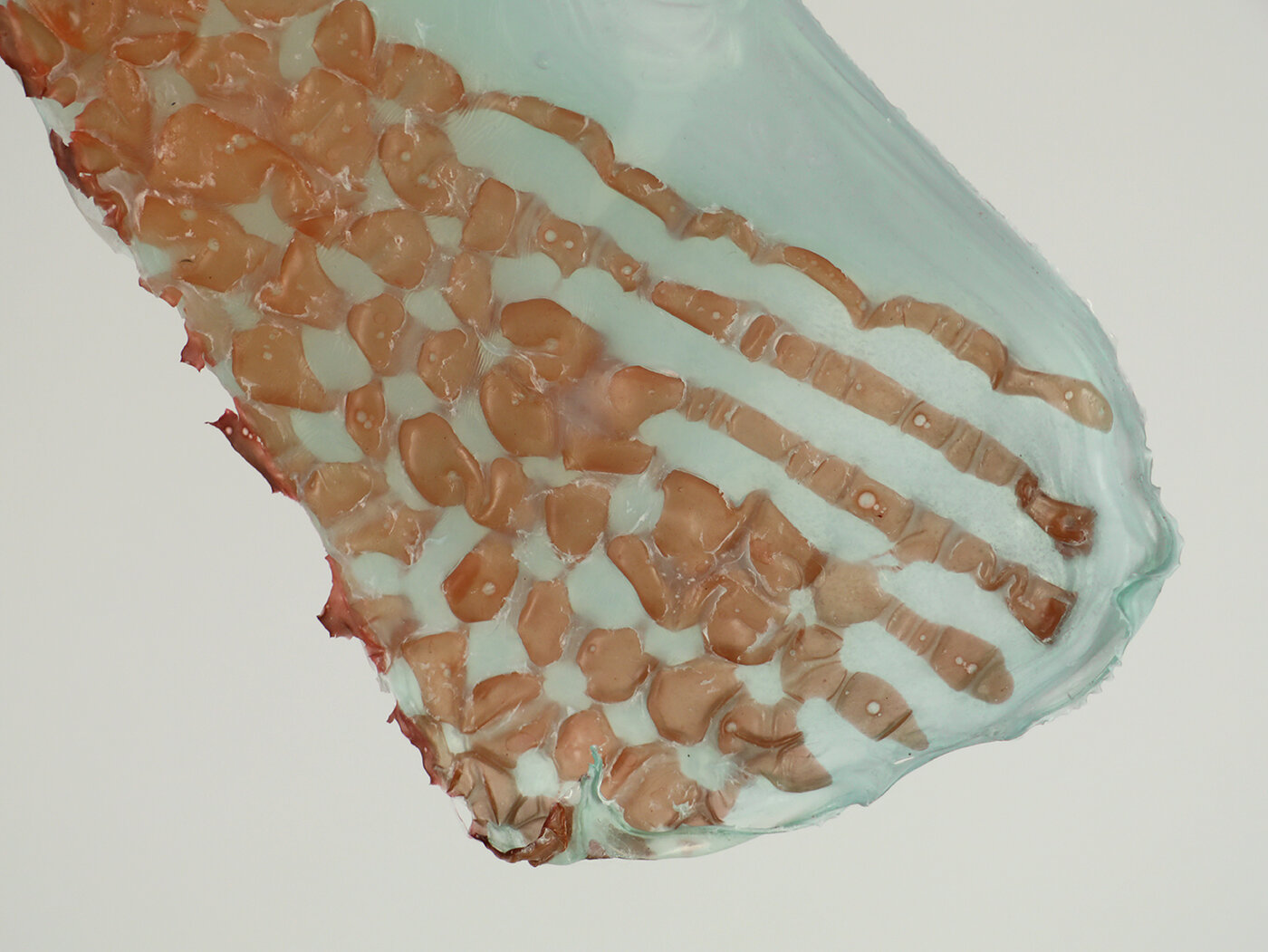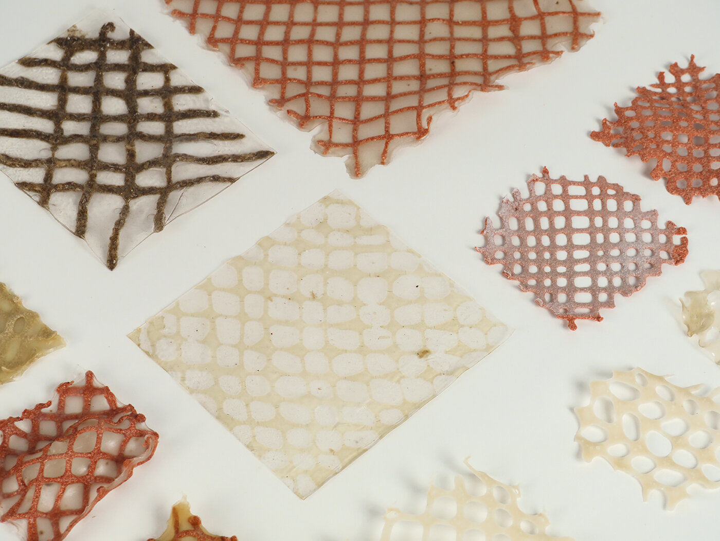 Übertragen auf unsere Experimente ist unser Ziel gewesen, Biomaterial-Kombinationen zu erforschen und Komposite zu entwickeln, welche aus eng miteinander verbundenen Schichten bestehen und aus der Interaktion zwischen organischen und anorganischen Komponenten resultieren. Um unsere Erkenntnisse zu verdeutlichen, haben wir einige Experimente weiterentwickelt und schließlich in physische Artefakte übersetzt, deren Entwicklung auf einer Unterteilung der verwendeten Komponenten, bzw. Materialschichten nach ihren funktionalen Rollen beruht. Angefangen mit einer Strukturschicht, die temporär oder permanent als Gerüst dienen kann, geht es weiter mit einem geeigneten Nährboden, bzw. Lebensraum, in dem Mikroorganismen wachsen können. Zuletzt kommt eine äußere, semipermeable Schicht, welche die physische Schnittstelle zur Umwelt darstellt und das System somit gleichzeitig offen und geschlossen hält.