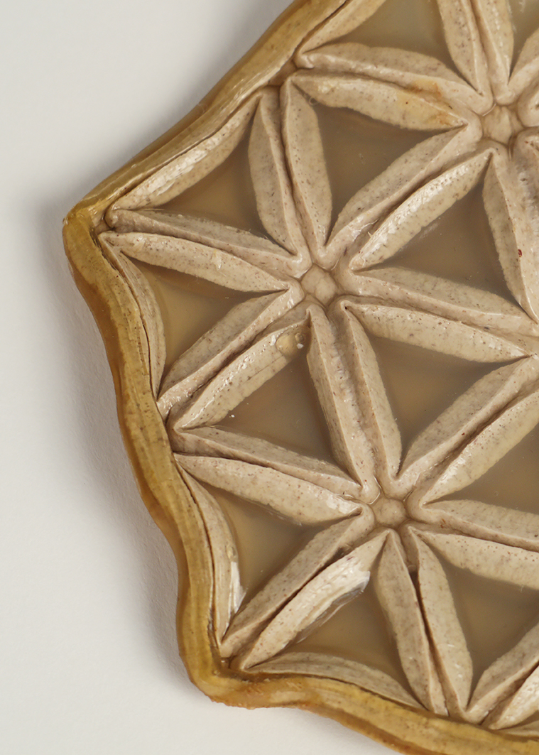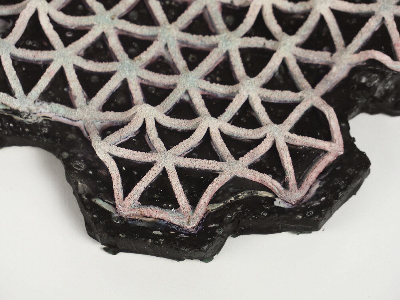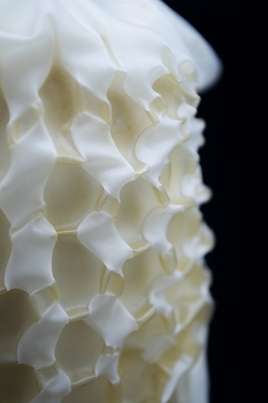 Übertragen auf unsere Experimente ist unser Ziel gewesen, Biomaterial-Kombinationen zu erforschen und Komposite zu entwickeln, welche aus eng miteinander verbundenen Schichten bestehen und aus der Interaktion zwischen organischen und anorganischen Komponenten resultieren. Um unsere Erkenntnisse zu verdeutlichen, haben wir einige Experimente weiterentwickelt und schließlich in physische Artefakte übersetzt, deren Entwicklung auf einer Unterteilung der verwendeten Komponenten, bzw. Materialschichten nach ihren funktionalen Rollen beruht. Angefangen mit einer Strukturschicht, die temporär oder permanent als Gerüst dienen kann, geht es weiter mit einem geeigneten Nährboden, bzw. Lebensraum, in dem Mikroorganismen wachsen können. Zuletzt kommt eine äußere, semipermeable Schicht, welche die physische Schnittstelle zur Umwelt darstellt und das System somit gleichzeitig offen und geschlossen hält.