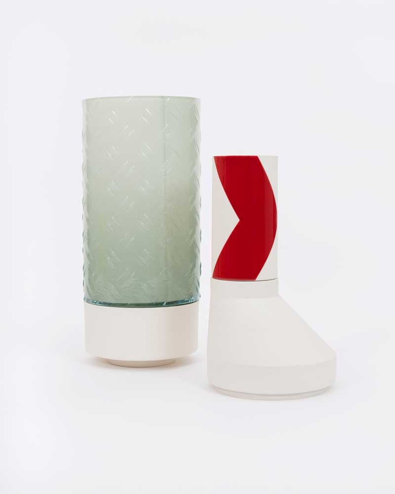 The group of objects, consisting of ceramic and glass objects, shows an experimental design approach with focus on the process and formal-aesthetic appearances. In the so-called “sampling” process the components’ appearances that underlie certain norms and regimes are taken up, deprived in their original function and extended by a communicative function. The conglomerate of forms moves between expressive and utilitarian value.