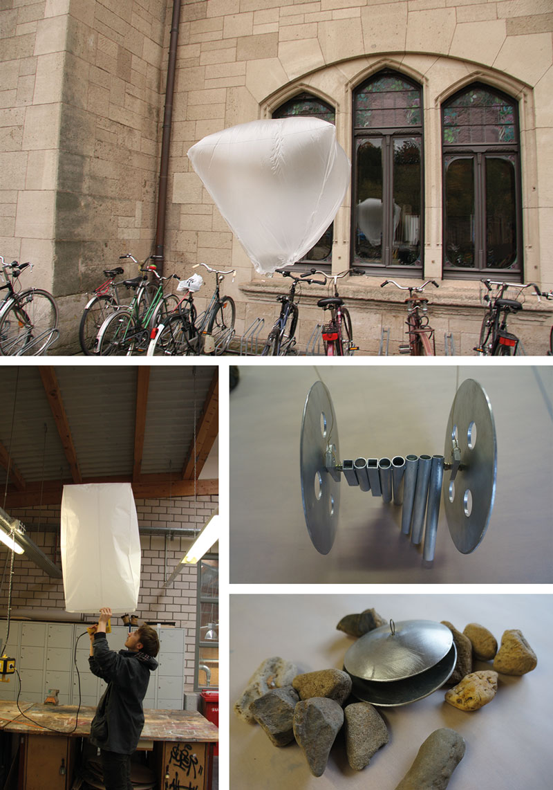 Entsprechend dazu wollen wir in diesen zwei Kompaktwochen Objekte für Wind und Ohr gestalten. Fliegende „Windmusikanten“, die elegant und dabei klingend, tönend oder geräuschvoll durch die Luft tanzen, schweben und gleiten...