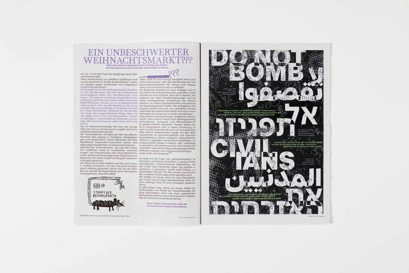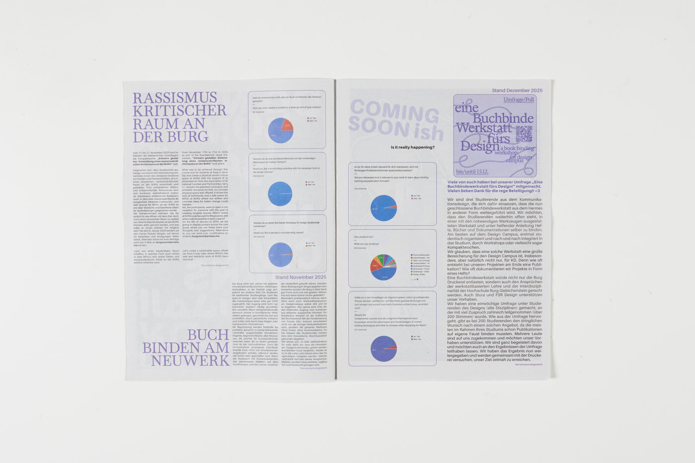 Eine Ausgabe kostet rund 1.000 Euro für 1.000 Exemplare - das ist leider die Mindestauflage, die wir drucken lassen können. Wir dürfen unsere Ausgabe leider nicht in der Burg-Druckerei drucken. Obwohl dadurch wären die Kosten deutlich geringer. Für die #4 Ausgabe haben wir eine Förderung von FemPower und dem StuRa erhalten, die einen Großteil der Druckkosten abdeckt.