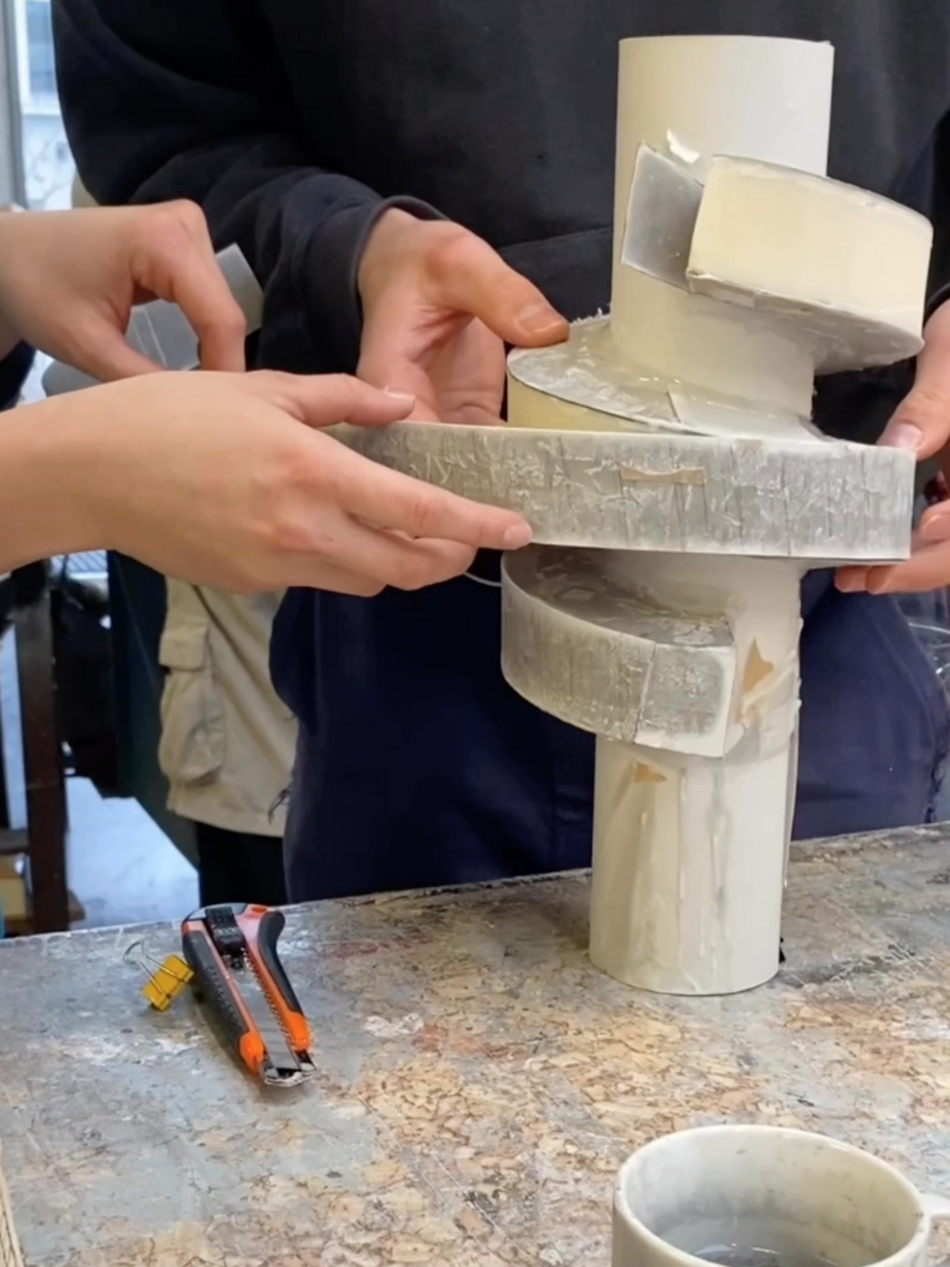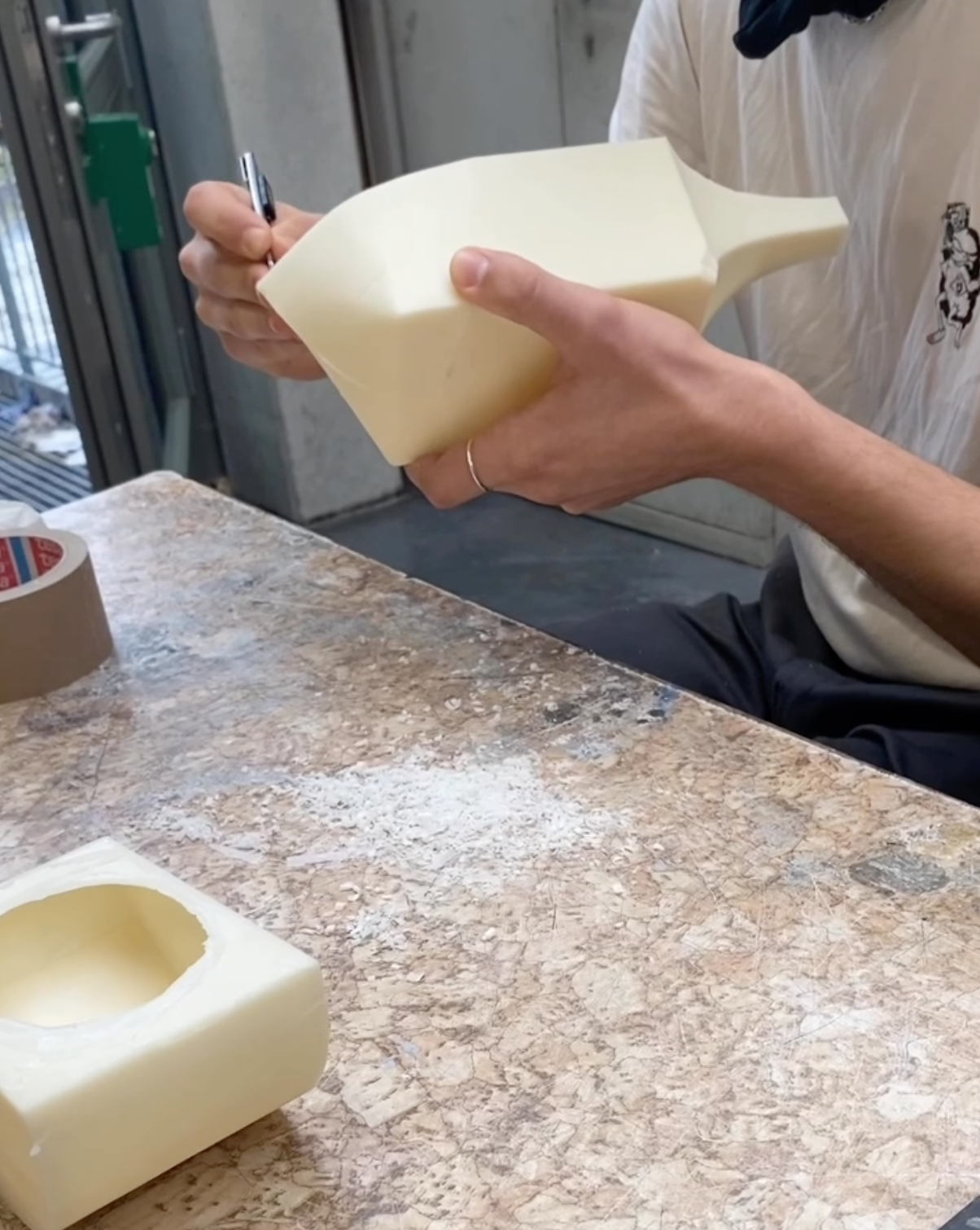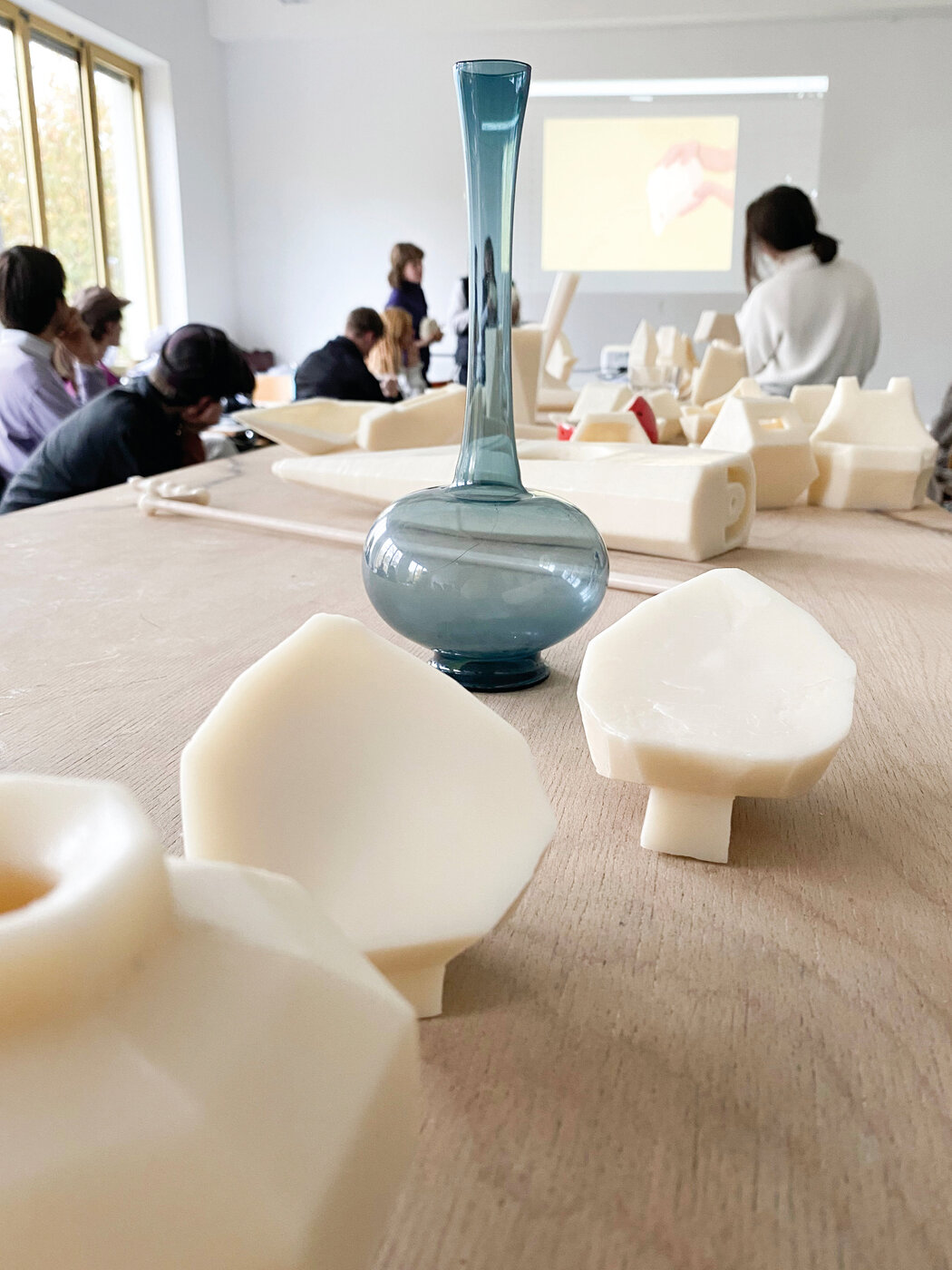 Der Prozess wechselte zwischen planerischer Konstruktion mit Papier und plastischem Arbeiten mit Wachs, das sich frei bearbeiten, teilen und