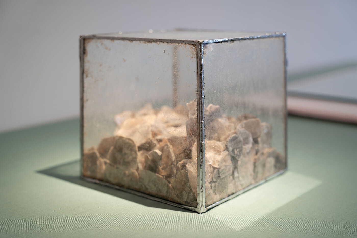 Mirabilia besteht aus einer dreiteiligen Anordnung aus handgefertigten keramischen Kleinteilen, ergänzt durch Steine verschiedener Herkunft und versteinertem, Millionen Jahre altem Holz. Die vieldeutigen, teils organisch anmutenden Objekte entziehen sich bewusst einer morphologischen Zuordnung und regen durch ihre ästhetische Ambivalenz zu assoziativen Betrachtungen an. Hier nähert sich Mirabilia dem Konzept der Wunderkammer und ihren Naturalien, wobei Faszination, aber auch Fragen nach Provenienz und Ursprung, besonders interessant sind. Die Arbeit lädt dazu ein, sich der poetischen Kraft des Unbekannten hinzugeben: Ein sinnlicher Dialog zwischen Natur, Kunst und Mystik