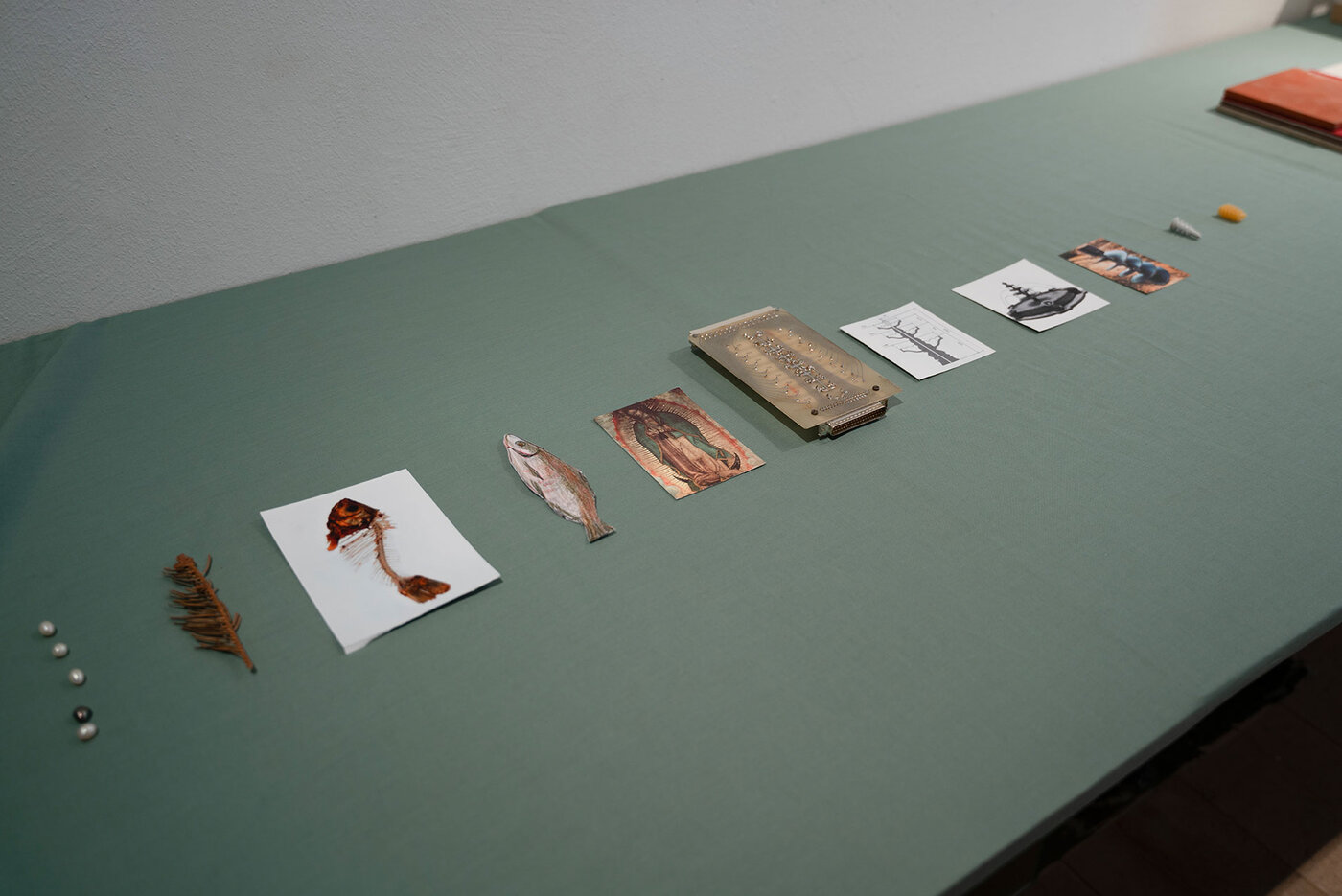 Die Abalone – eine Meeresschnecke, deren Schale sich ebenfalls im Muschelschrank der Kunst- und Naturalienkammer befindet – wird zum Ausgangspunkt einer fragmentarischen Recherche, die ökologische, ökonomische, kulturelle und koloniale Verflechtungen sichtbar macht. Drei Arten auf dem Tisch – aus nachhaltiger Aquakultur in der Bretagne, einer privaten Sammlung von Strandfunden und dem internationalen Online-Handel – verweisen auf unterschiedliche Kontexte globaler Zirkulation.