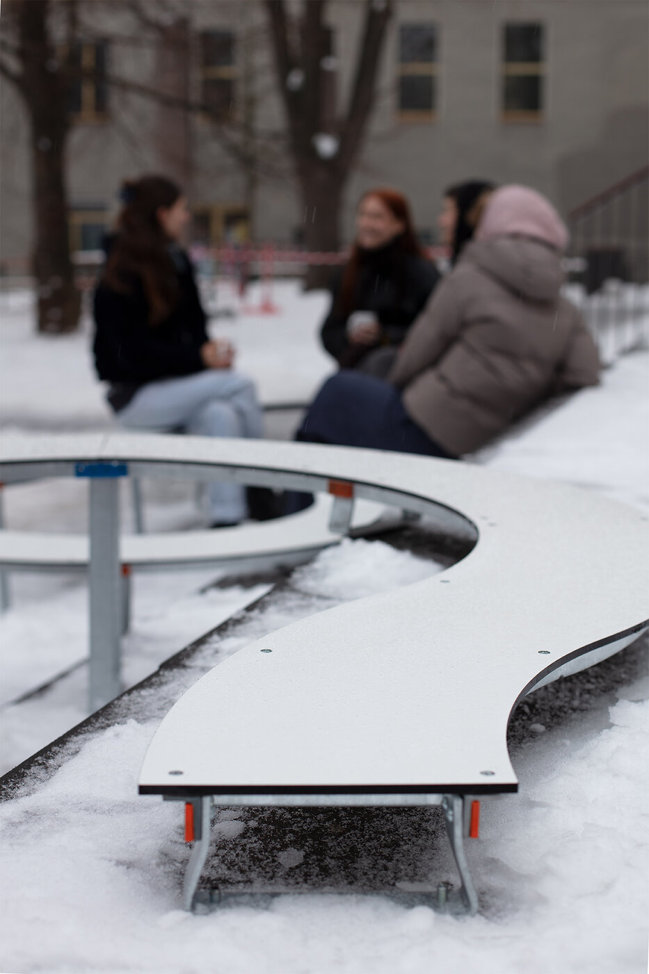 Im Rahmen des Entwurfsprojekts „Kommen. Gehen. Bleiben.“ entwickelten Studierende Sitzmöbel für konkrete Orte auf dem Campus. Ziel war es, die Aufenthaltsqualität in den halböffentlichen Räumen der Hochschule spürbar zu verbessern.