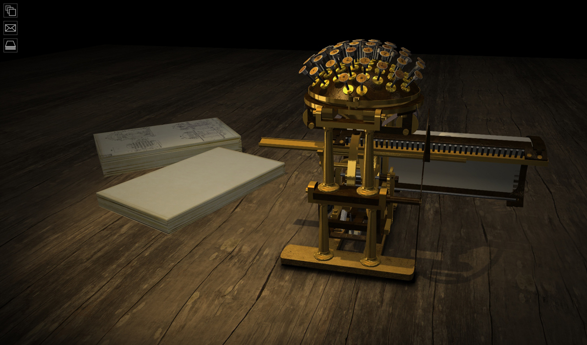 Die Grundlagen dafür sind, die digitale 3D-Modellierung und fotorealistische Visualisierung des Objektes nach Fotografien mit Autodesk 3dsMax, sowie die interaktive VR-Präsentation der Schreibkugel in Unity3d, entstanden im Semesterprojekt Artefakte II, 4.Semester, im Studiengang Multimedia|VR-Design. Betreut wurde das Studienthema von Prof. Bernd Hanisch und Dipl. Des. Daniel Ackermann.