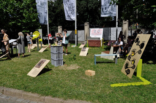 Studierende der Innenarchitektur haben für #3000Garagen einen Erzählparcours entworfen, der zehn ausgewählte Garagenstandorte im Chemnitzer Stadtraum markiert. Jedes Entwurfsteam entwickelt ein Ensemble von urbanen Möbeln zum Informieren, Rasten und Vertiefen. Ausschnitte der Entwürfe wurden von den Studierenden in Originalgröße umgesetzt.