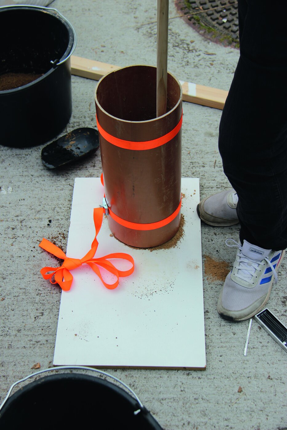 Meeting up for a quick coffee after the summer break, the group of students, "prog/rammed earth" residents and contributors assembled on campus, ready for part one of the three day rammed earth workshop series. The day started with a presentation by Dr. Franziska Knoll, coordinator of GOLEHM, an initiative for loam construction and sustainable circular economy situated in Halle (Saale). Loam being a traditional building material, the initiative’s aim is to revive its popularity and create a sustainable, nationally visible profile for the region by recording, researching and preserving loam building heritage sites in Central Germany.