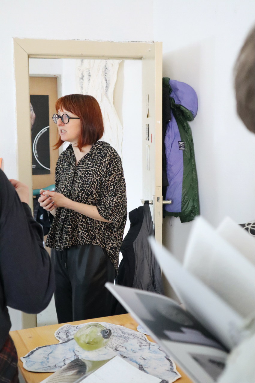 Während unseres Atelierbesuchs erhielten wir spannende Einblicke in ihre aktuellen Projekte, darunter experimentelle Biotechnologien und die künstlerische Erforschung mikrobieller Prozesse. Besonders faszinierend war ihr Ansatz, lebende Systeme als kreative Mitgestalter in Kunstwerken einzusetzen.