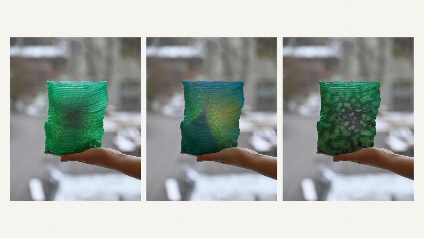 Im Gegensatz zu herkömmlichen Farbstoffen besitzen diese strukturellen Farben einzigartige optische Eigenschaften. Johnston nutzt speziell Flavobakterien, die natürlicherweise auf Anemonen vorkommen, um lebendige Grün- und Violetttöne zu kultivieren. Diese biologisch erzeugten Farben sollen auf Keramikfliesen zum Einsatz kommen und könnten eine nachhaltige Alternative für die Farbanwendung in der Architektur und im Produktdesign darstellen. Ihre Forschung umfasst das Züchten organisierter Bakterienkolonien in speziell entwickelten Lebensräumen wie 3D-gedruckten Biotubes, um die Wechselwirkung von Licht mit deren Oberflächen zu manipulieren. Inspiriert von der Irisierung von Schmetterlingsflügeln und den Chromatophoren von Tintenfischen untersucht sie in ihrer Arbeit auch Nährmedien und Zellverhalten, um das Ergebnis zu verfeinern. Das übergeordnete Ziel: eine lebendige, reaktionsfähige Oberfläche, auf der Farbe nicht hinzugefügt, sondern gezüchtet wird – und die sowohl die Ästhetik als auch unsere Vorstellung von Farbe selbst verändert.