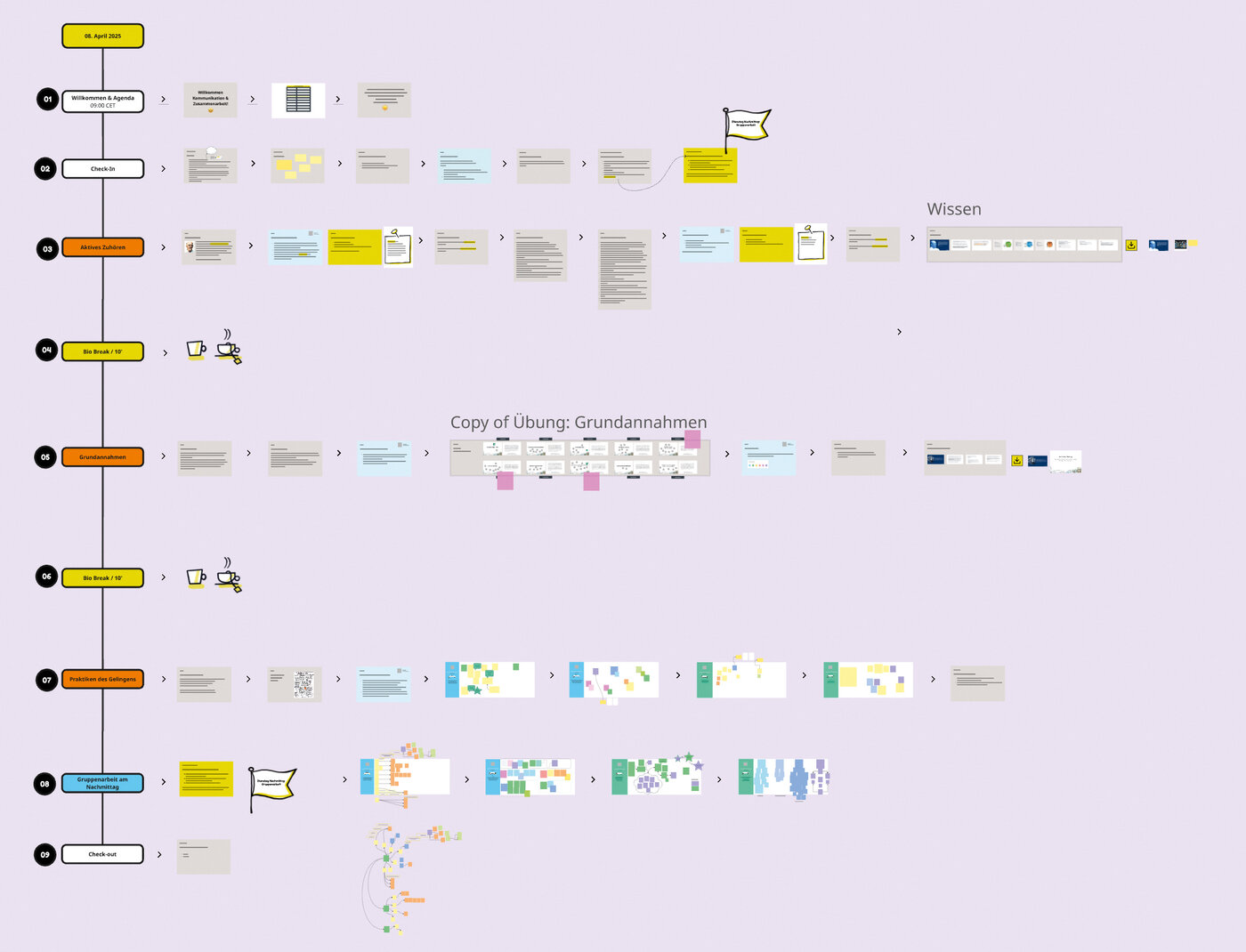 In weiteren Trainingseinheiten konnten die Studierenden verschiedene Rollen für Gruppenarbeitssituationen wie Zeitnehmer, Moderator oder Gastgeber einüben und sich an grundlegende strukturelle Meeting-Elemente wie Social Check-Ins oder das bekannte Check-Out gewöhnen. Jede Sitzung wurde von verschiedenen Bewertungs- und Reflexionsübungen begleitet.
