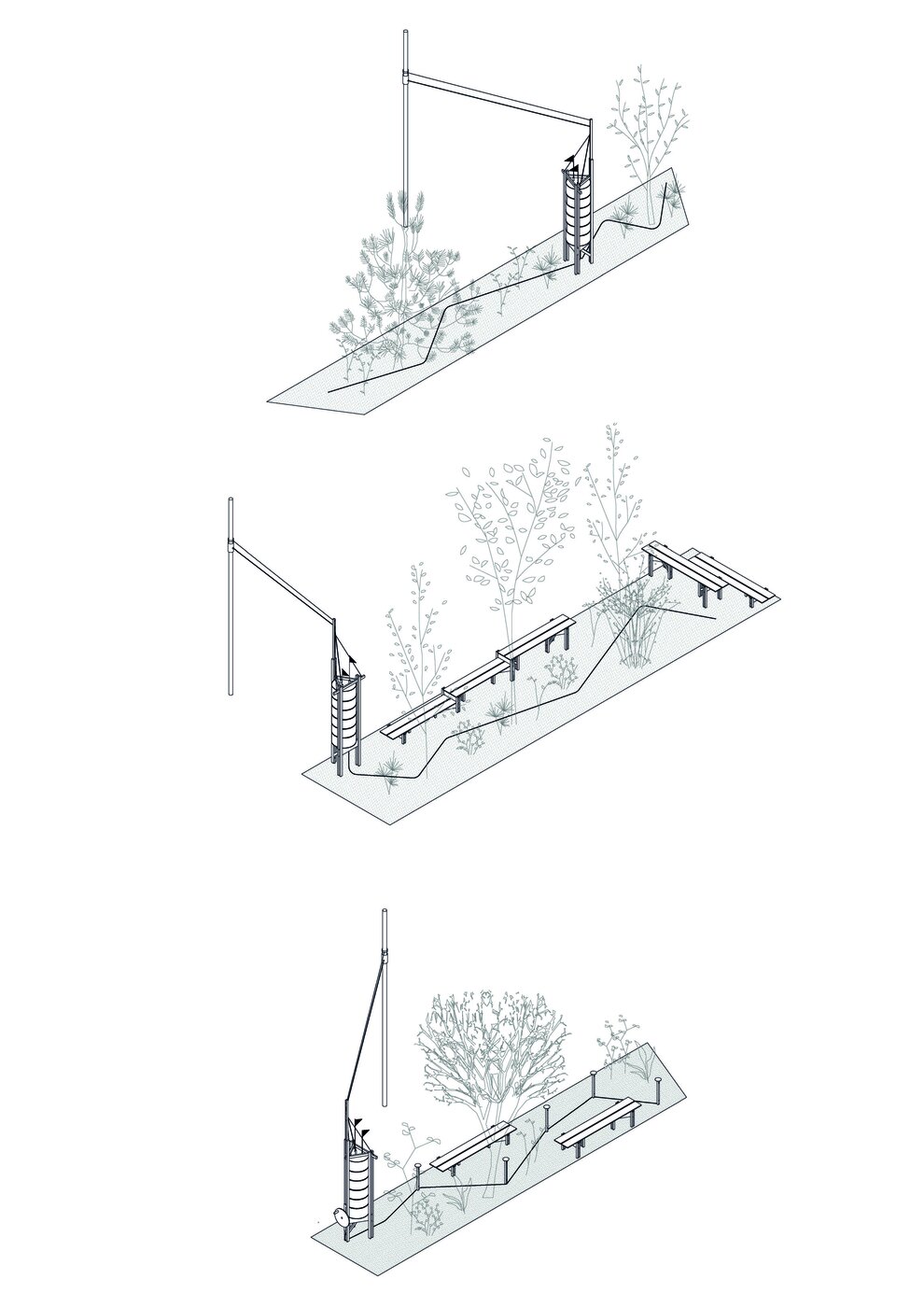 Das Projekt Regentürme zielt darauf ab, freistehende Regenspeicher auf städtischen Grünstreifen zu platzieren, um diese durch trockene und heiße Sommermonate zu bringen und in gesunde Grünflächen umzuwandeln, die zur Kühlung der Stadt beitragen. Die Regentürme können je nach Standort mit Bänken und einem interaktiven Bewässerungssystem ausgestattet werden.