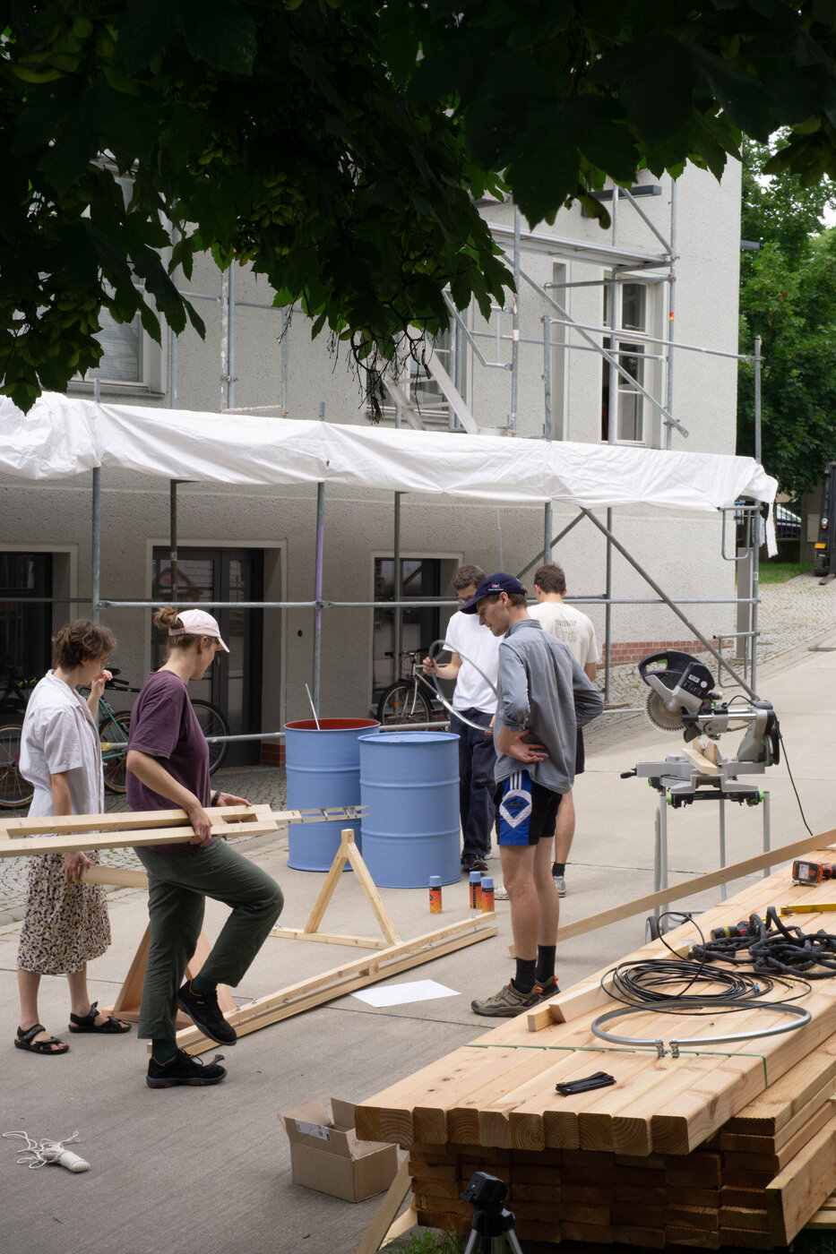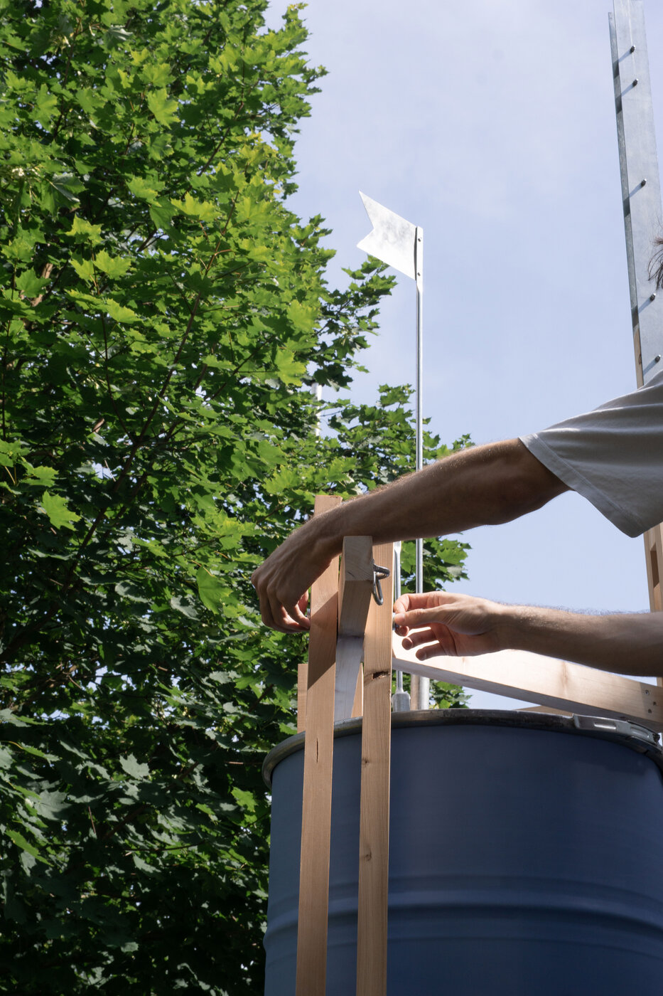 Die Stadt initiiert und finanziert das Projekt mit Fördermitteln. In lokalen Makerspaces kommen Stadtbewohner*innen zusammen, um die Regenspeicher für ihre Nachbarschaft zu bauen. In einem zweiten Schritt werden die Türme von der Stadt aufgestellt, was mit gemeinschaftlichen Pflanzaktionen verbunden werden kann.