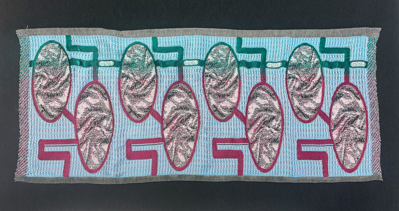 In Auseinandersetzung mit der Region Bitterfeld-Wolfen ist eine Serie von Jacquardgeweben entstanden, welche Motive der Industriekultur und Umweltverschmutzung in ein ästhetisches Ensemble integrieren. Der Entwurfsprozess ist inspiriert durch historische Vorbilder, den ‚bizarren Seiden‘ aus dem 18.Jhr. Ihre phantastische Formensprache basiert auf einem Missverständnis – einer Kontextverschiebung. In einer fiktiven ethnologischen Betrachtung werden die ‚bizarren Kunstseiden‘ wiederum historisch und aus einer von Deindustrialisierung und Ressourcenmangel geprägten Zukunft gesehen.