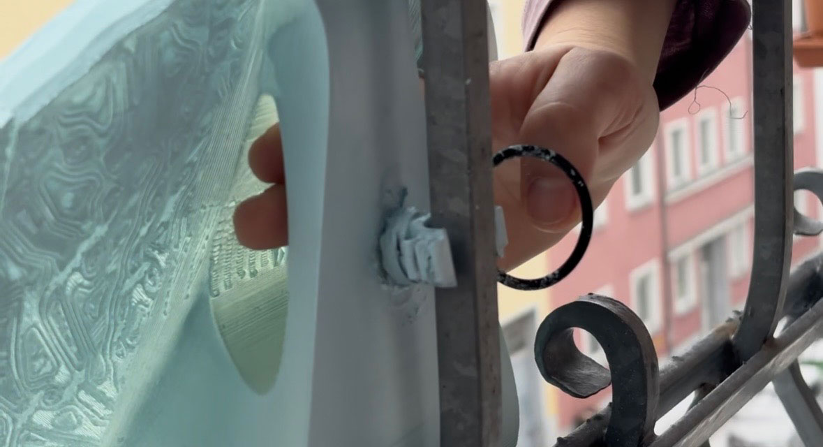 Der SolarPie ist dafür ausgelegt, in einem festen Winkel von 30 Grad aufgehängt zu werden, um die Sonneneinstrahlung zu optimieren und gleichzeitig zu ermöglichen, dass Regenwasser und Schmutz auf natürliche Weise von der Oberfläche abfließen. Ein integrierter Griff erleichtert das Halten und Montieren des Moduls während der Installation und reduziert den Aufwand sowie die Installationszeit. Das Befestigungssystem, mit dem das Solarmodul montiert wird, ist flexibel gestaltet und kann sich an unterschiedliche Größen und Konfigurationen anpassen. Dadurch ist das System modular aufgebaut, sodass einzelne Module ausgetauscht, erweitert oder aufgerüstet werden können, ohne das gesamte System ersetzen zu müssen.