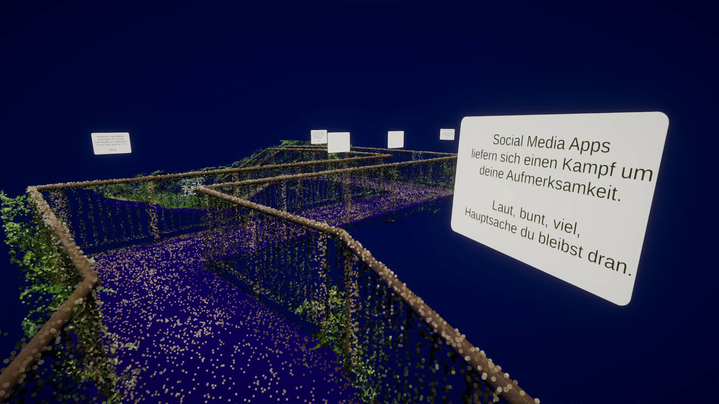 in einem VR Szenario, was zum Nachdenken anregen soll.