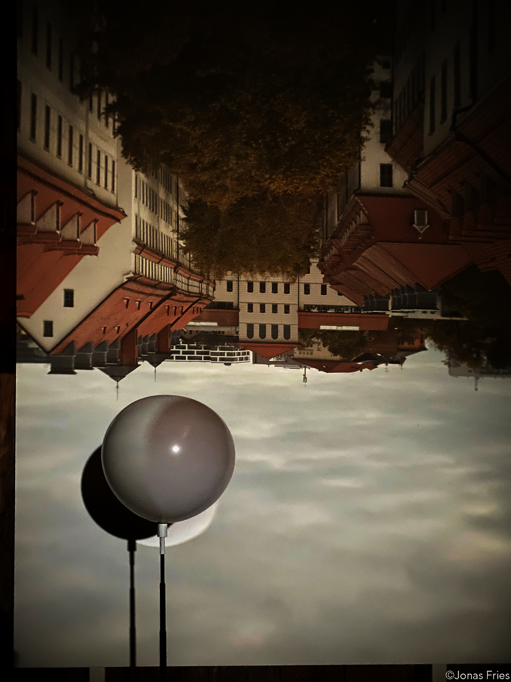 Ein mit Helium gefüllter weißer Ballon ist auf der Höhe der Linse der begehbaren Camera Obscura fixiert. Im Inneren der Camera Obscura steht ein weiterer Ballon, der auf einem Stativ genau an der Stelle positioniert ist, an der das Abbild des äußeren Ballons reflektiert wird. Das sich bewegende Abbild des äußeren Ballons wird sowohl auf die Projektionsfläche als auch auf den inneren Ballon geworfen. Die Installation spielt mit der Überlagerung von Realität und Projektion.