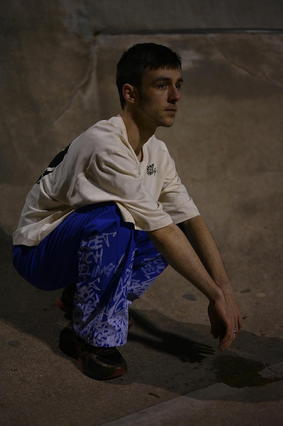 Die Grunddaten dessen sowie die Erscheinung der Kleidung führte dazu, abseits der klassischen Modefotografie, einen Ort zu bestimmen der diesem Gerecht wurde. Zwischen Betonplatten und Härte stießen wir auf einen Skatepark, der bei Nacht durch das Erstrahlen des Fluchtlichtes zu einem interessanten urbanen Raum wurde, in dem wir den Charakter der Kollektion als gut aufgehoben empfanden.