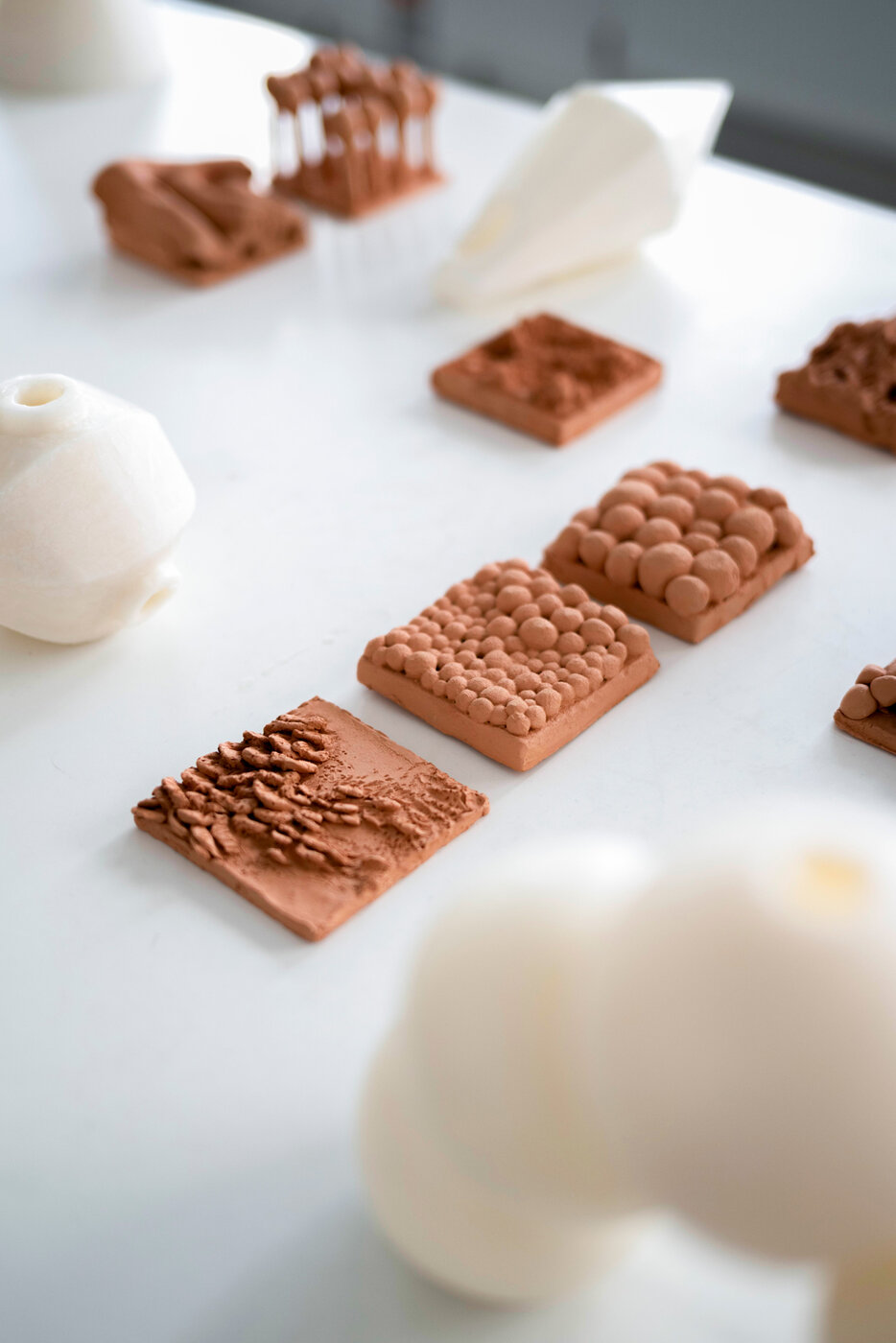 Im Kurs Surface Matters drehte sich alles um Oberflächengestaltung mit plastischem Material. Dabei untersuchten wir, wie wir die optische Haptik von Keramik verändern können, und erarbeiteten in Gruppen lebhafte und ausdrucksstarke Oberflächen für bereits entworfene Gefäße.