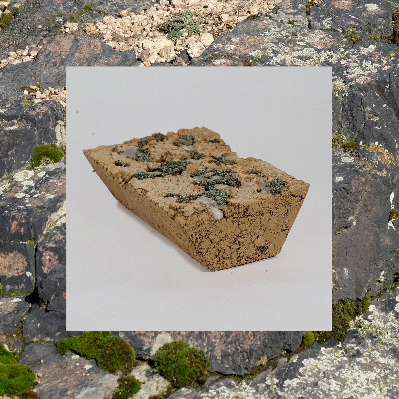 While originally investigating possibilities for creating hollow spaces that living matter could grow in (such as roots or mycelium), I started to follow the idea of turning the highly condensed and practically lifeless material into a living one. The focus shifted from using rammed earth as a mold to making rammed earth inhabitable in itself. Integrating the modular approach, I started a series of building bricks while reaching out to specialists for consulting on which species could feel at home in the rammed earth modules.
