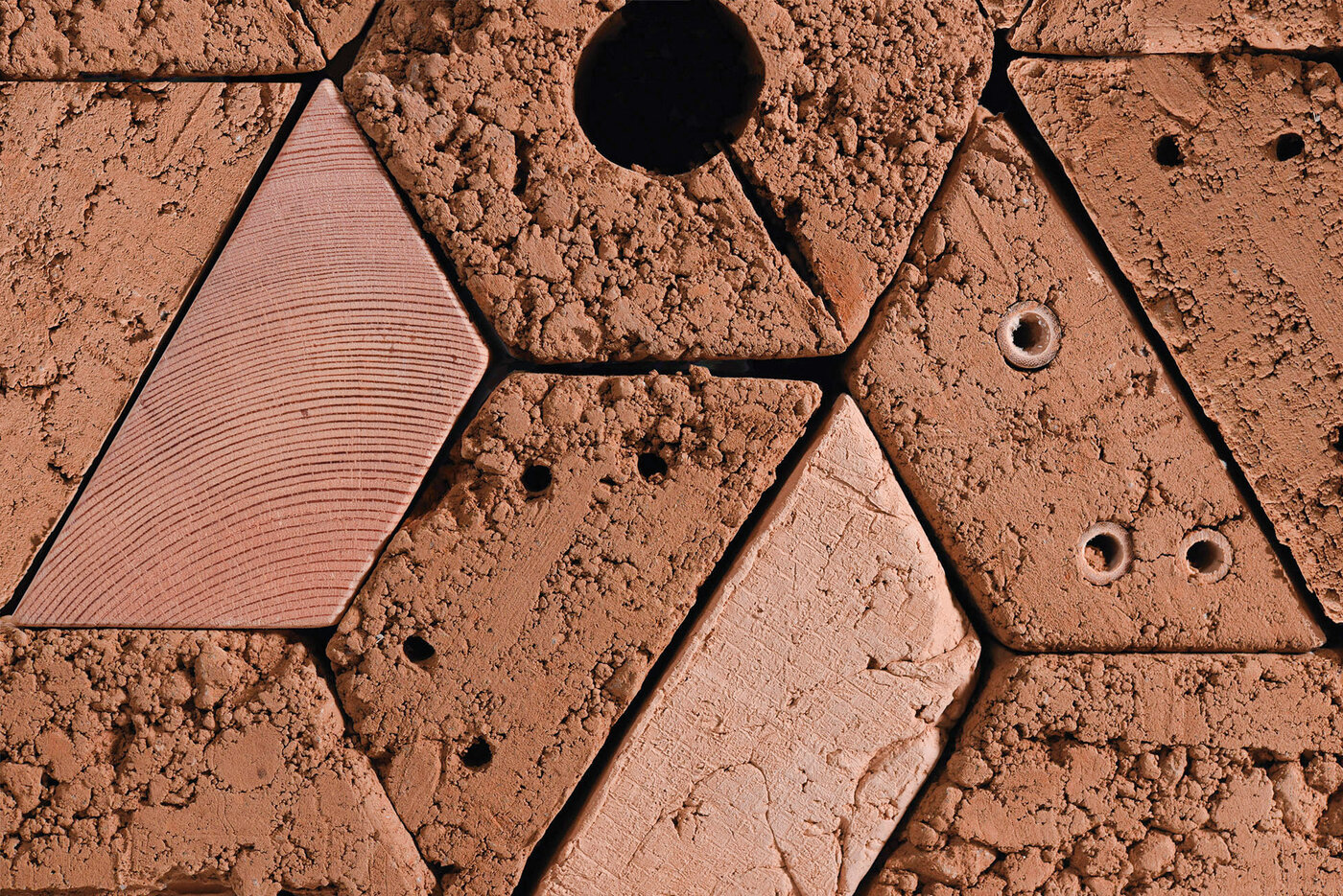 An early approach to making clay and rammed earth structures more accessible seemed to me to be scaling down the dimensions of large construction blocks. I wanted a potential crowd to understand the raw material and its characteristics by picking up, touching, and handling the material. While exploring modular shapes and systems, I came to appreciate the process of ramming earth, having in mind an analogy of moldable stone.