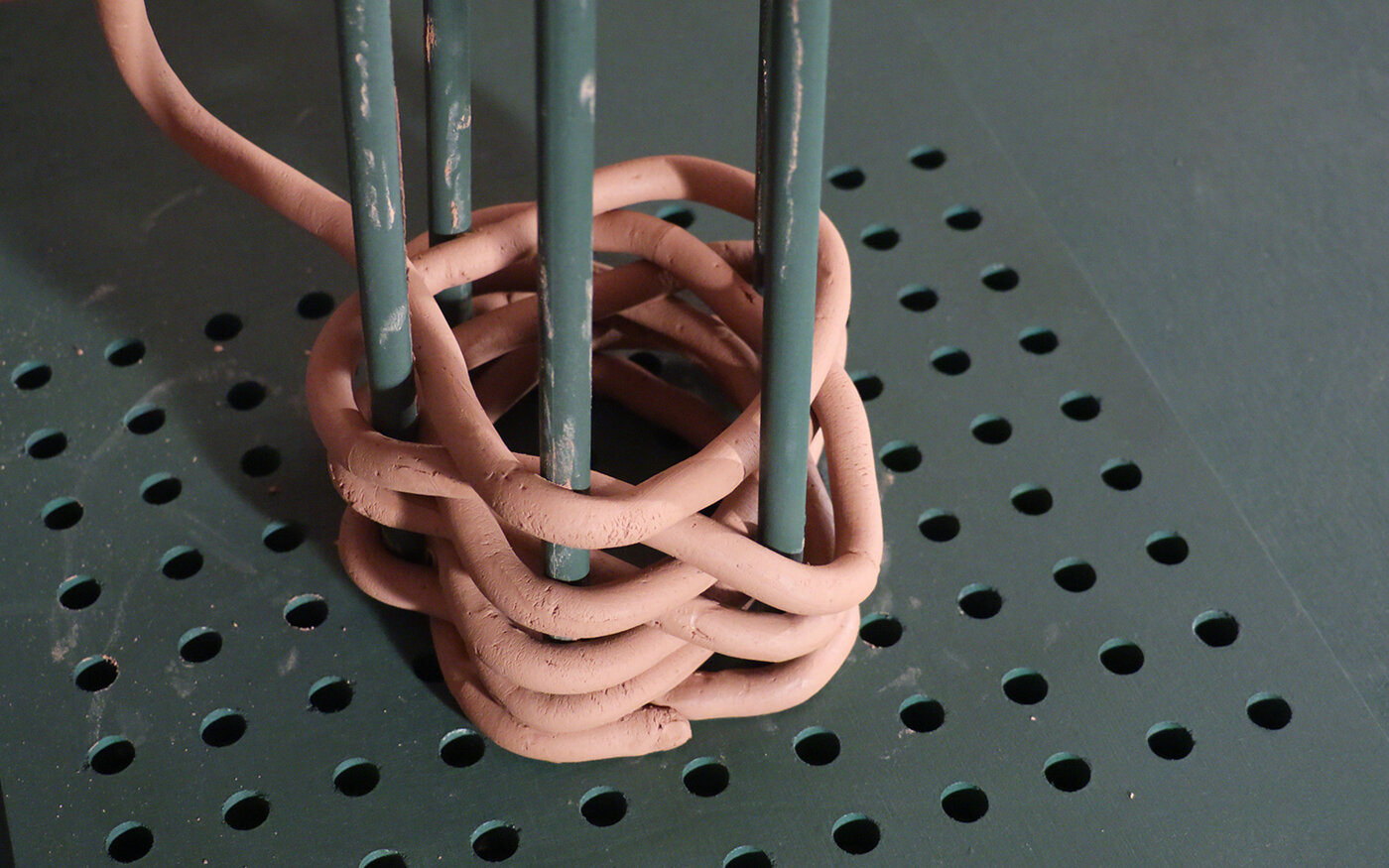 Innerhalb meines Projektes thematisiere ich diese stetige Veränderung und bringe sie in Zusammenhang mit den zirkulierenden Eigenschaften des regionalen Materials Lehm. Dieses wird aus dem Boden entnommen, verarbeitet und anschließend in eine feste und nicht mehr veränderbare Form gebracht. Das führt dazu, dass die Kreislauffähigkeit des Materials nie wirklich ausgeschöpft wird. Entscheidet man sich, das Material nicht zu brennen, so bietet es die Möglichkeit, beliebig oft neu geformt zu werden. „The circular clay machine“ geht auf die Fähigkeiten des Materials ein und zeigt in mehreren Stationen, in wie viele unterschiedliche Formen das Material durch verschiedene Verfahren gebracht werden kann. Die Maschine hat weder einen sichtbaren Anfang noch ein sichtbares Ende, durch die wiederverwendbaren Eigenschaften des Materials können die verschiedenen Stationen beliebig oft bespielt werden. Diese Arbeit zeigt die vielen Verarbeitungsmöglichkeiten auf, die es ausgehend von zwei Kilogramm ungebranntem Ton geben kann. „The circular clay machine" kann als Inspiration für zukünftige Produktionsmöglichkeiten interpretiert werden.