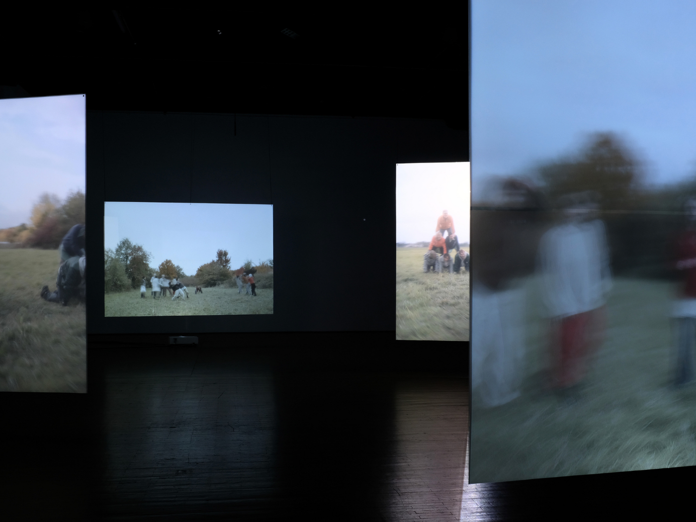 PLAY ist eine Videoinstallation, die durch Live-Sound und Performance erweitert wird. Die Module von Bild, Klang und Körper treten momenthaft in Erscheinung, überlagern und lösen sich wieder -so entsteht eine Art „Raumspiel“. Die Installation verhandelt Spiel als körperliche und relationale Praxis und übersetzt Impulse aus Kinderspielen wie Fangen, Verstecken und Raufen in dokumentarische und teilweise choreografierte Begegnungen.