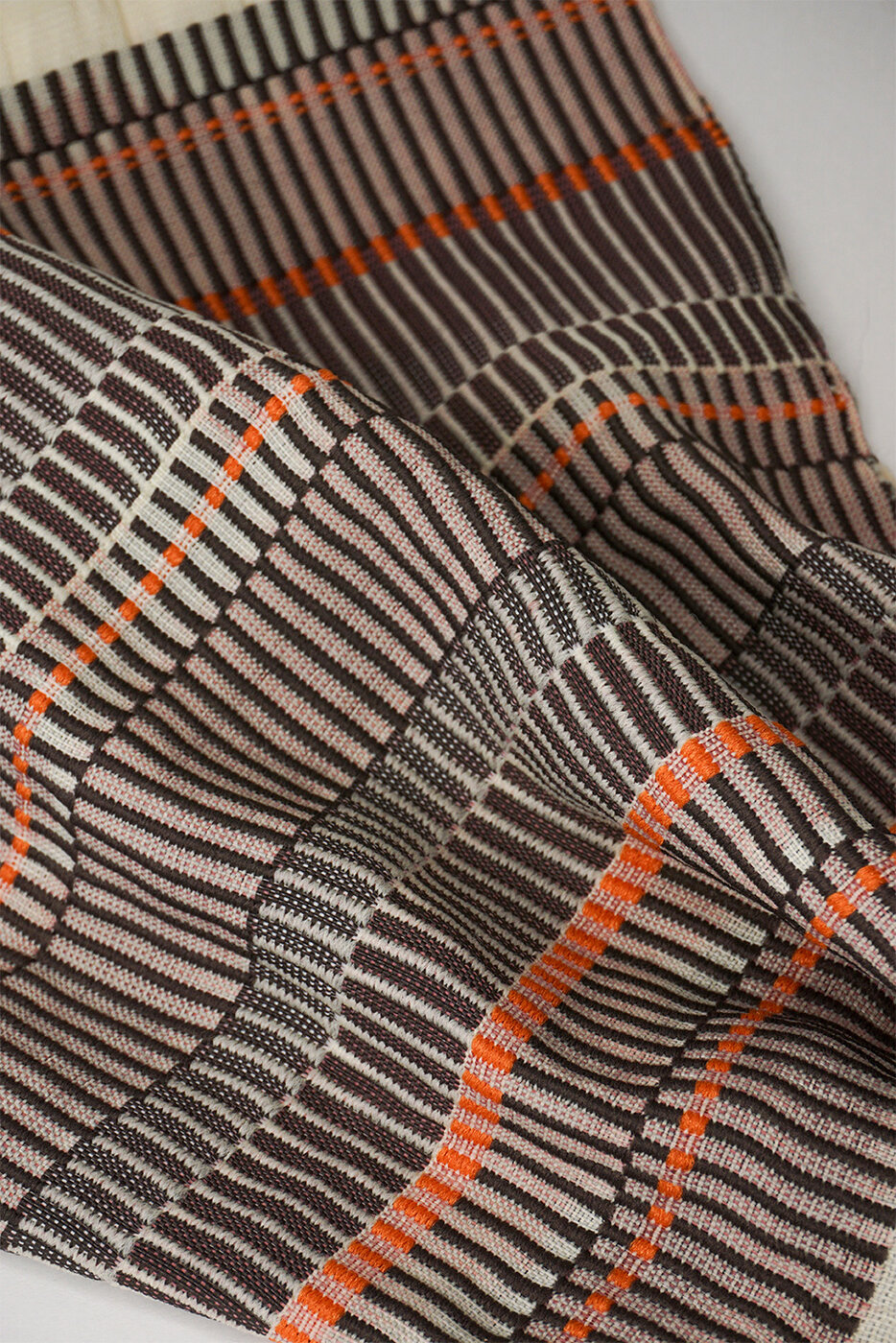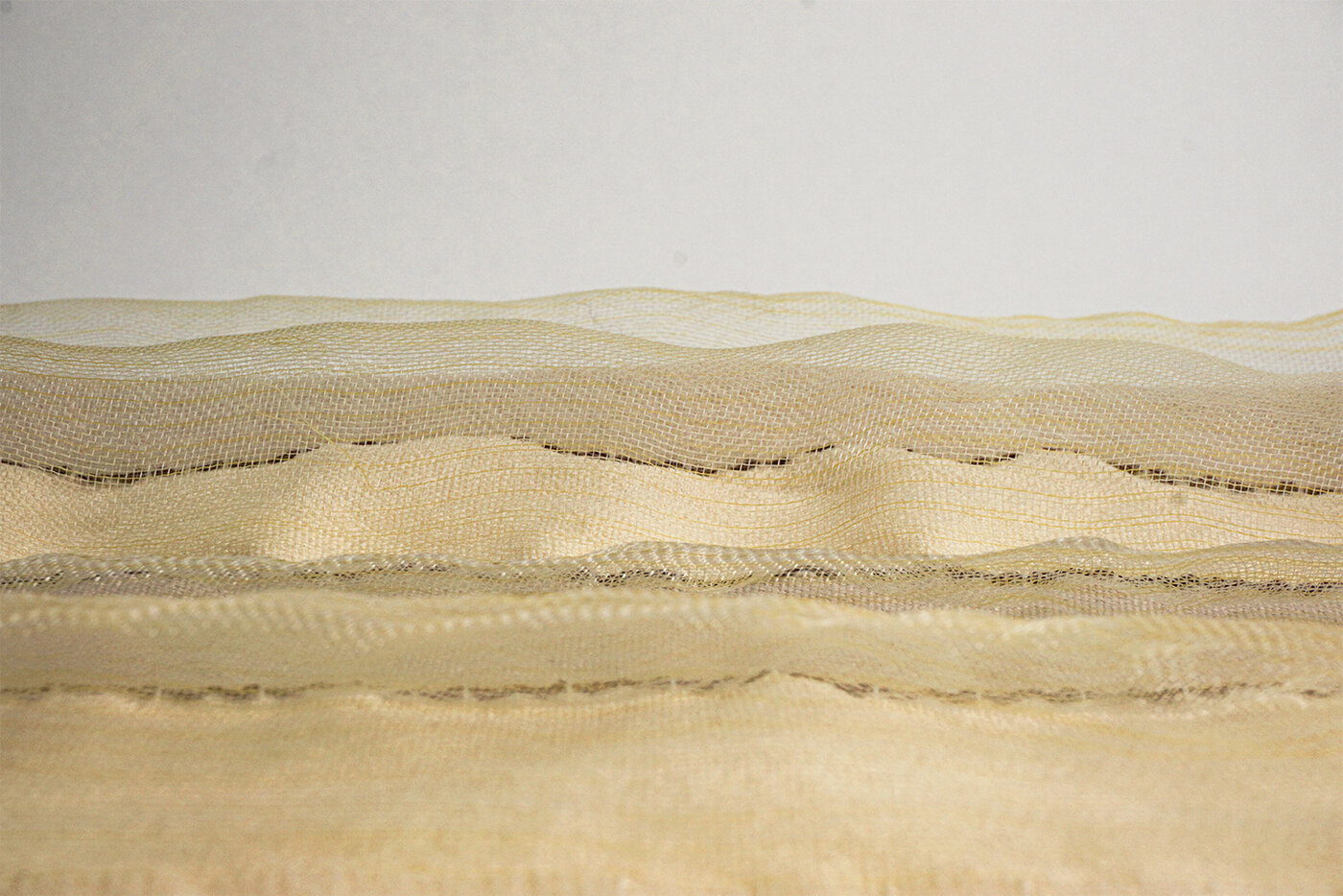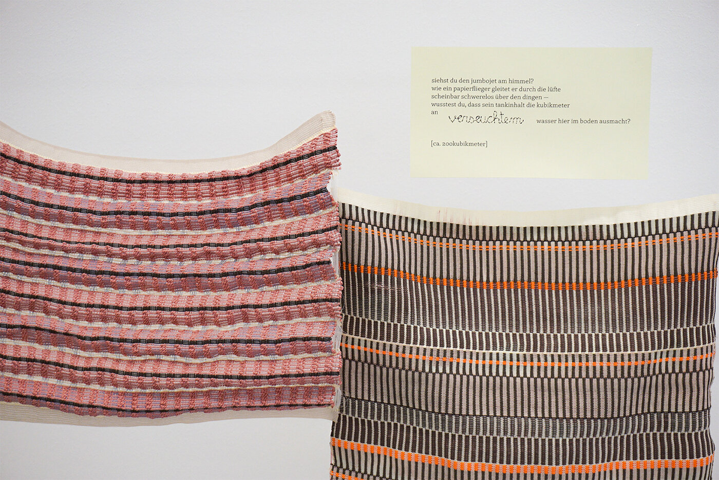Die interdisziplinäre Zusammenarbeit, die Textildesign und Anthropologie methodologisch und inhaltlich verwebt, übersetzt Kontaminationsprozesse: Der textile Part durch sanfte Farbverläufe, grafische Farbflächen und verdichtete Strukturen im Gewebe, die das atmosphärische Erbe des Ortes visualisieren. Der textlich-fotografische Part vermittelt poetisch Erkenntnisse aus der Anthropologie sowie aus Feldforschungen vor Ort und Gesprächen mit Zeitzeug*innen.