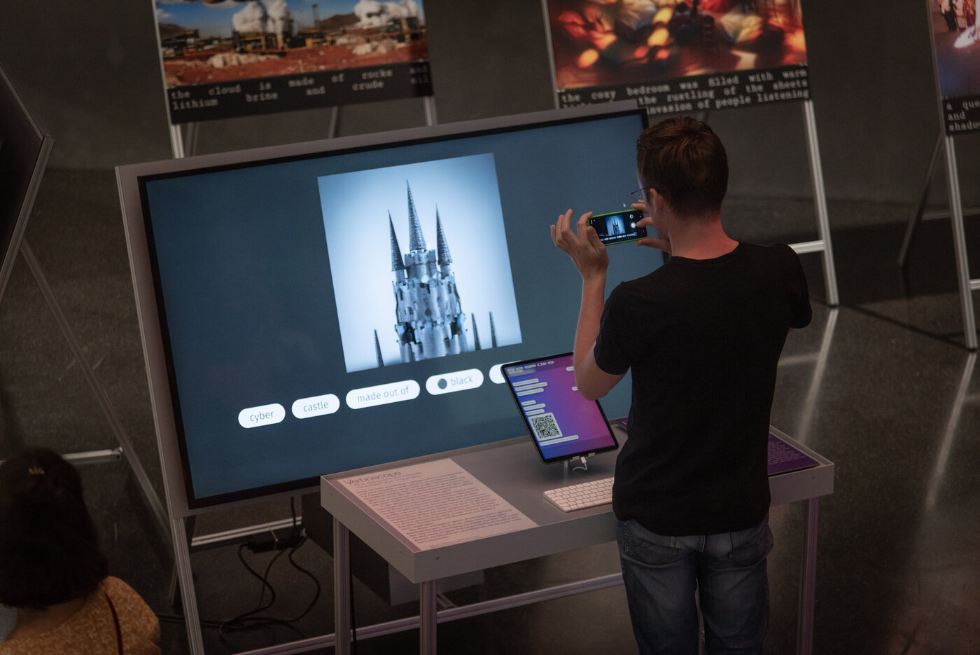 Bilder mit Hilfe Künstlicher Intelligenz zu beschreiben und darin Objekte und Situationen zu erkennen, war für Forscher*innen lange eine große Herausforderung. Schließlich gelang dies mit Algorithmen des maschinellen Lernens. Mit dem Erfolg entstand die Idee, den Prozess umzukehren: Ist es möglich, realistische Bilder aus einer Textbeschreibung zu erzeugen? Die Installation Verboscope machte diesen Ansatz zur generativen Synthese von Bildern in Form einer Ausstellungsinstallation bereits frühzeitig erfahrbar und – bereits vor der inzwischen selbstverständlichen Verfügbarkeit von Bildgebenden KI-Systemen – für ein breites Publikum zugänglich.