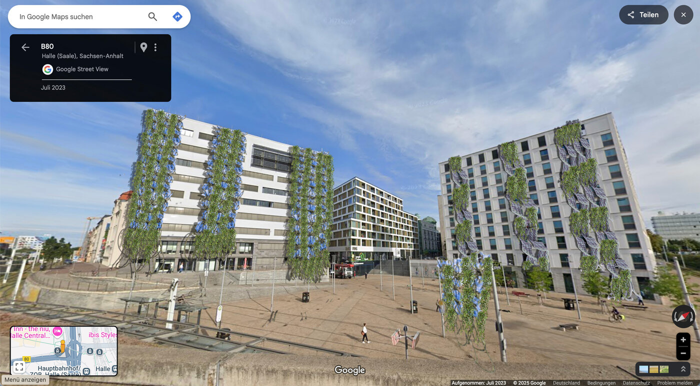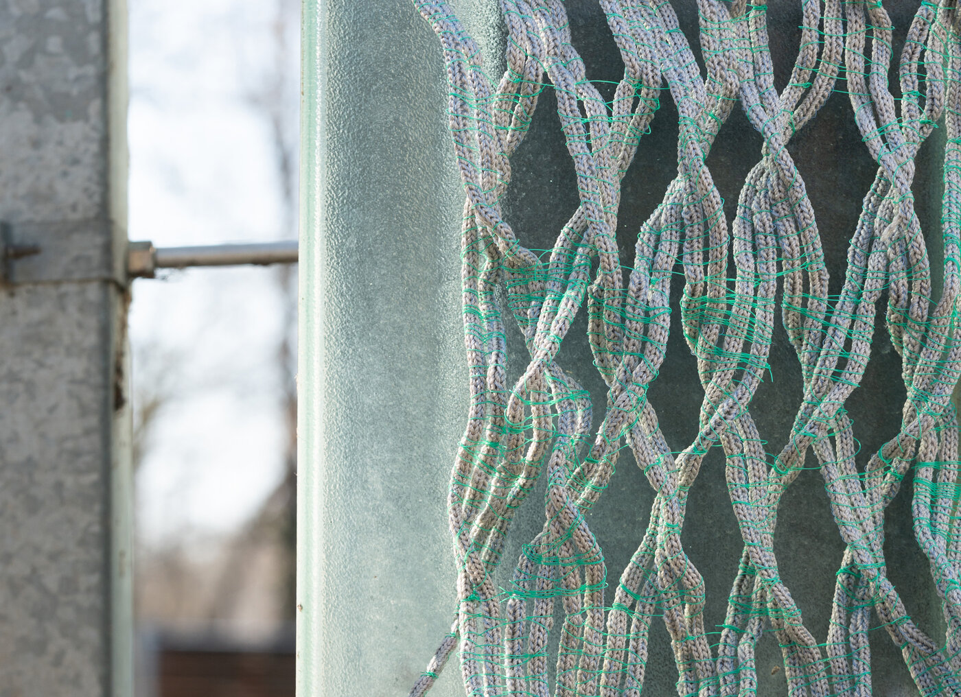 Gestrickte Schläuche aus Econyl, einem regenerierten Polyamidgarn, werden mit Substrat und Samen gefüllt. Diese werden an dem V-Loom zu einem anpassungsfähigen Gewebe verwebt, welches an Fassaden befestigt oder freistehend im urbanen Raum eingesetzt werden kann. Das Besondere an der textilen Oberfläche ist ihre Flexibilität, die es den Pflanzen ermöglicht, ungehindert zu wachsen. Die Festigkeit und Witterungsbeständigkeit von Econyl machen es ideal für den Einsatz im Freien. Als Monomaterialgewebe ist es außerdem leicht recycelbar. Dank seiner Rapportierbarkeit lässt sich das Gewebe an eine Vielzahl von Konstruktionsarten anpassen. Vertiloops schafft Biotope, wo das Pflanzenwachstum sonst schwierig wäre.