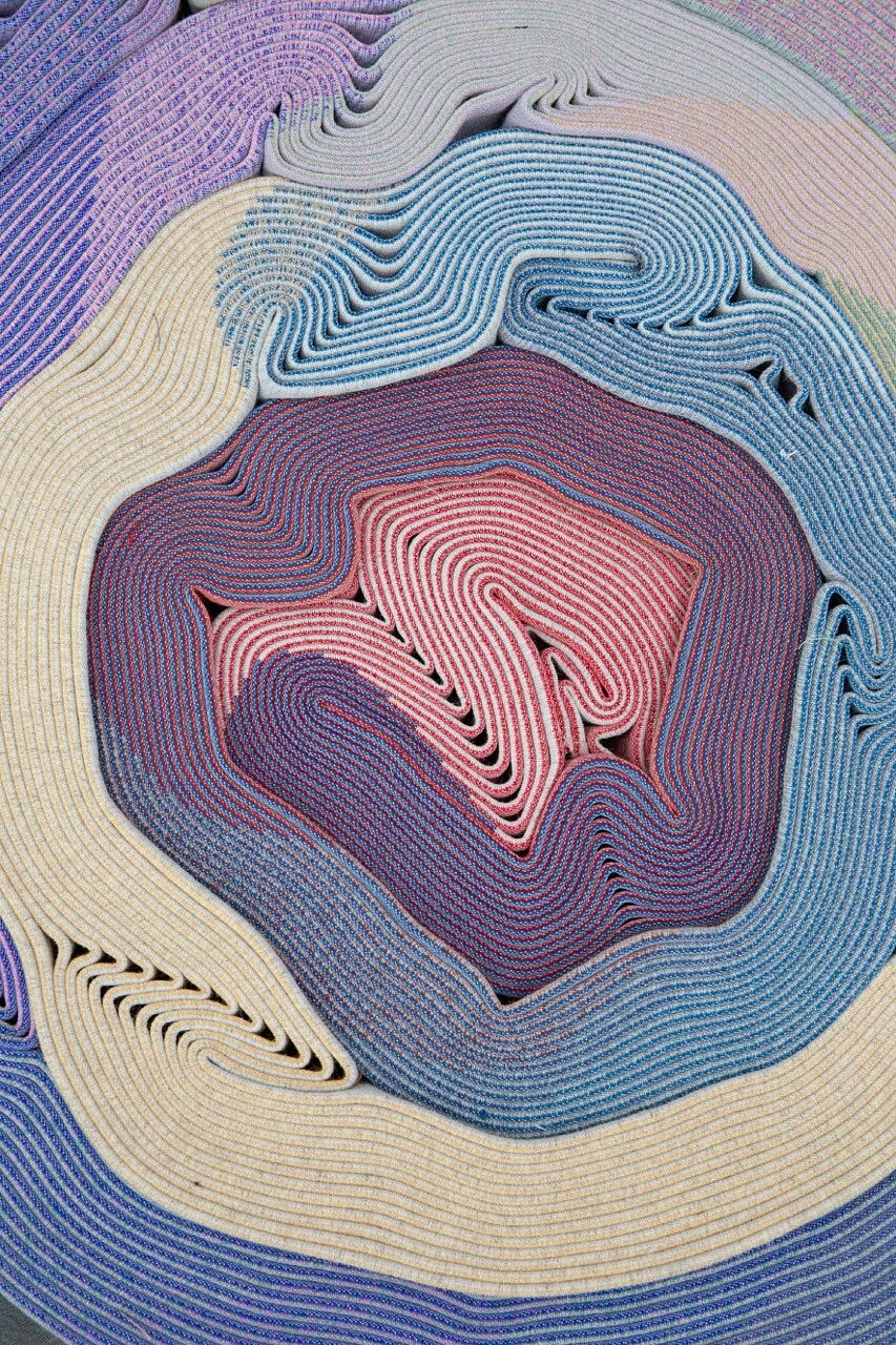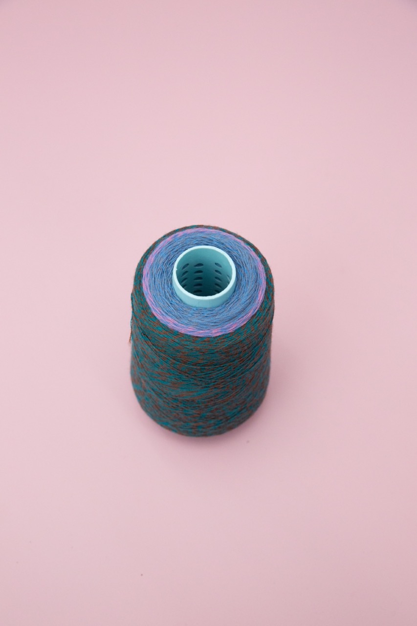 werden, um sie wieder industriell relevant zu machen. Es entsteht ein funktionierendes Garn, dass das Potenzial der begrenzten Reste zeigt: Die Länge der Farbreste beeinflusst das Stoffmuster, das Garn wird zur eigentlichen Gestalterin. Farbverläufe verleihen dem Stoff seine eigene Ästhetik. Die entwickelte Methode ermöglicht nicht nur die Wiederverwertung, sondern verleiht den Abfällen ein Alleinstellungsmerkmal.