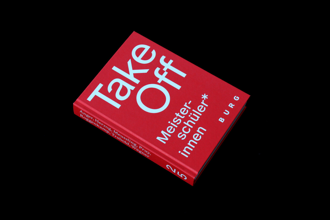Take Off soll sowohl als Leitfaden für die Ausstellung dienen, als auch Teil eines wachsenden Archivs von Künstler*innen sein, die diesen bedeutenden Abschluss ihres Studiums vollzogen haben. Die Designer Torsten Illner und Tobias Jacob haben spezielle Layoutentscheidungen getroffen, um der Publikation ein Leben weit über die Ausstellung hinaus zu verleihen. Dazu gehören ein kräftiges Farbschema, große Text- und Seitenzahlen sowie der Druck der Künstler*innennamen entlang des Buchrückens. Take Off wird zu einer Sammelbuchreihe heranwachsen, die einen informativen Einblick in die Arbeit von Künstler*innen am Anfang ihrer beruflichen Laufbahn bietet.