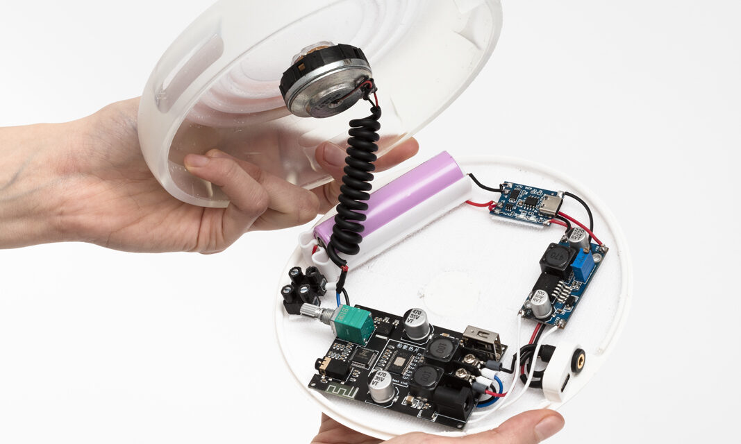 Die Grundidee des Entwurfs besteht darin, einen Bluetooth-Lautsprecher zu entwickeln, der so konstruiert ist, dass er leicht recycelt werden kann und somit zur Reduzierung von Elektroschrott beiträgt.